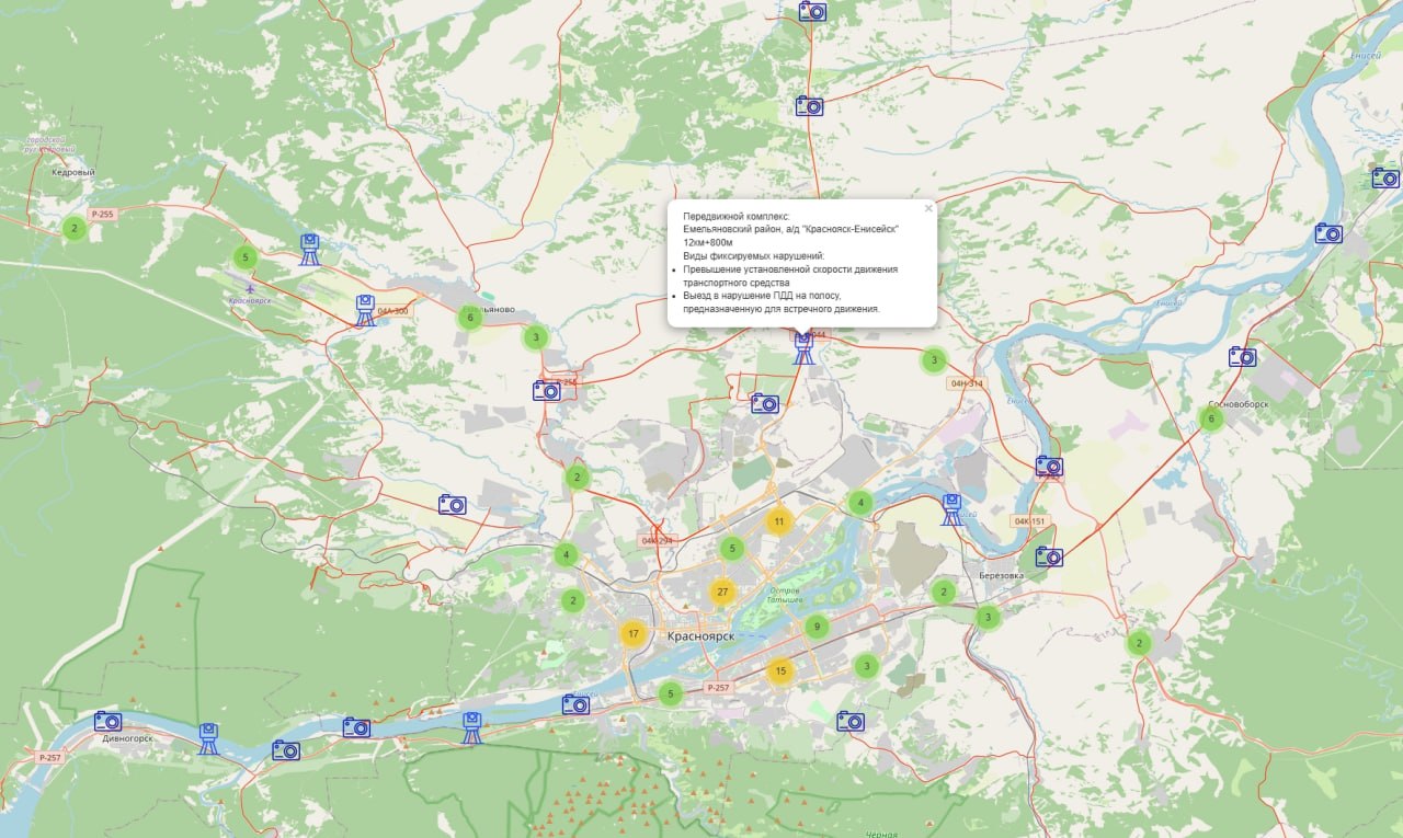 Управление дорог Красноярского края обновило информацию о местоположении передвижных комплексов фотовидеофиксации нарушений ПДД на интерактивной карте.