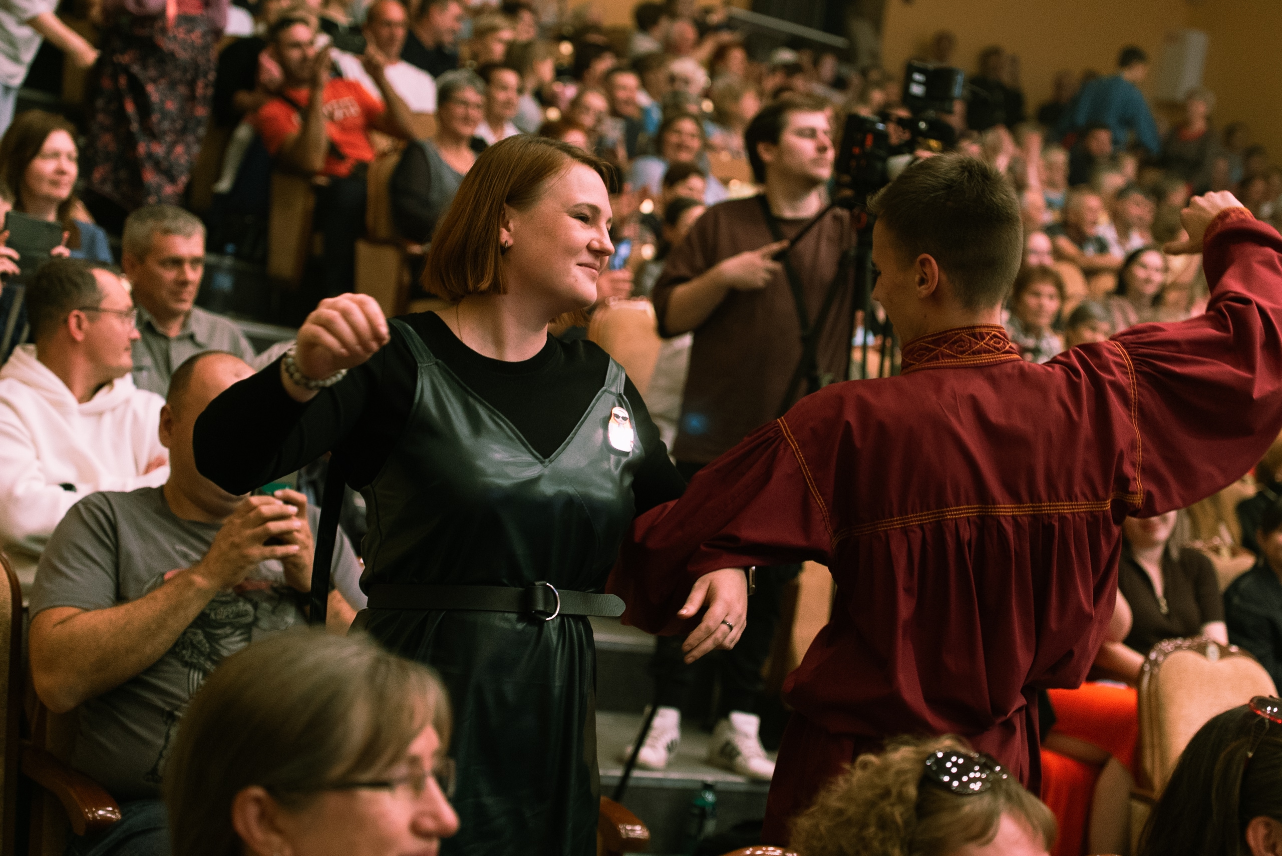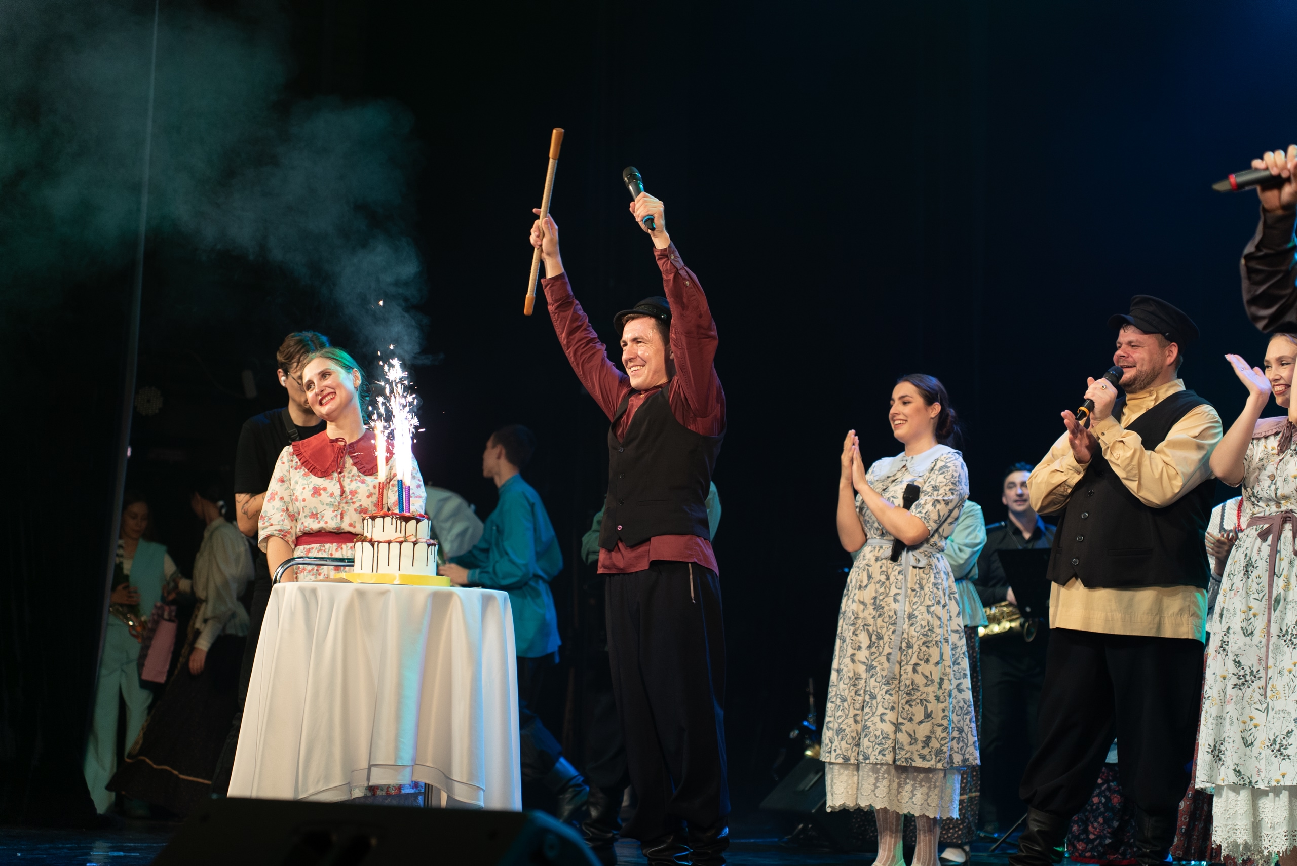 — Это программа на фестивале «Мир Сибири», а также создание сольного концерта. Мы очень щепетильно к нему отнеслись, ведь важно, чтобы зритель погрузился в атмосферу уже с гардероба. Мы подключили к работе интересных режиссеров, сценографов, видеографов, чтобы человек чувствовал, что он является одной семьёй с ансамблем народной песни «Красный Яр», ведь каждый зритель пришел получить тепло и любовь артистов. В этот день у нашего художественного руководителя Владимира был день рождения. Ансамбль поздравил его прямо со сцены. Мы вынесли большой торт, именинник задувал свечи и загадывал желание. Всё прошло в такой семейной атмосфере с нашими зрителями.