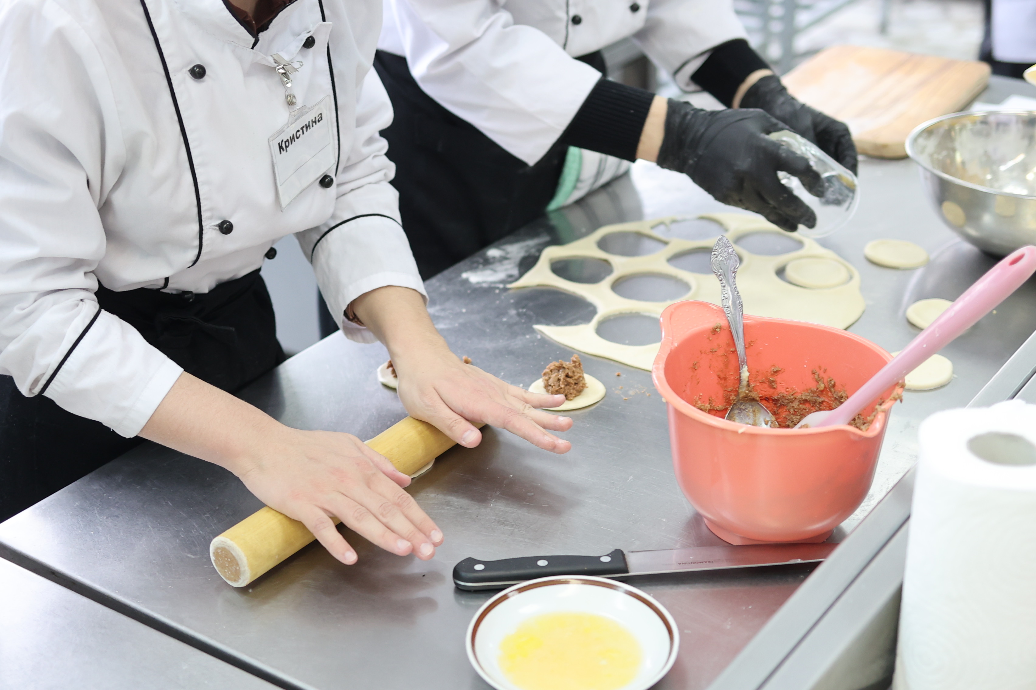 Жар от печей, звон посуды, стук ножей — так встретил зрителей кулинарный конкурс в Институте торговли и сферы услуг СФУ. В этом подразделении вуза уже не первое десятилетие готовят профессионалов в области гастрономии, поэтому здесь для студентов есть специальные лаборатории со всем необходимым оборудованием для тренировки поварских навыков. Занятия в них проходят регулярно, но конкурсы — это особые события, они показывают, как хорошо ребята усвоили тонкости работы с теми или иными продуктами. Пожалуй, из-за того, что результат труда будет подвергнут строгой оценке, на любых соревнованиях чувствуется волнение участников. Кулинарный конкурс не стал исключением, тем более что красноярские молодые повара для состязаний выбрали крайне оригинальные рецептуры, по ним блюдо нужно приготовить, а затем красиво и творчески презентовать.