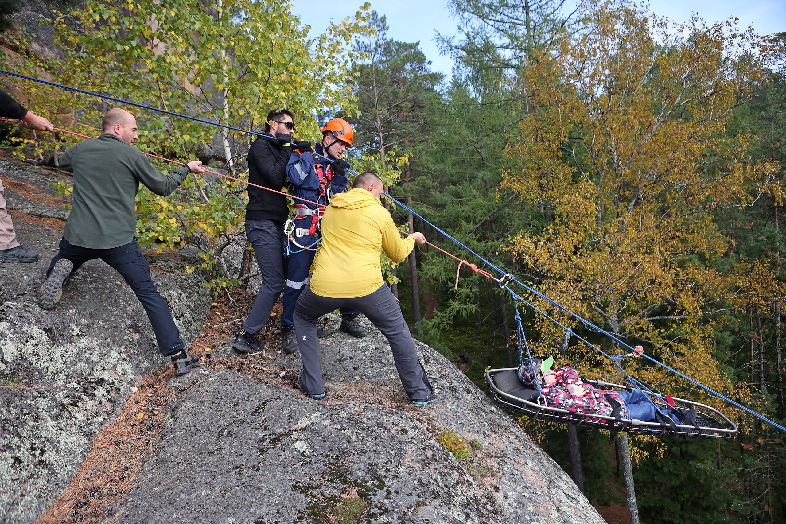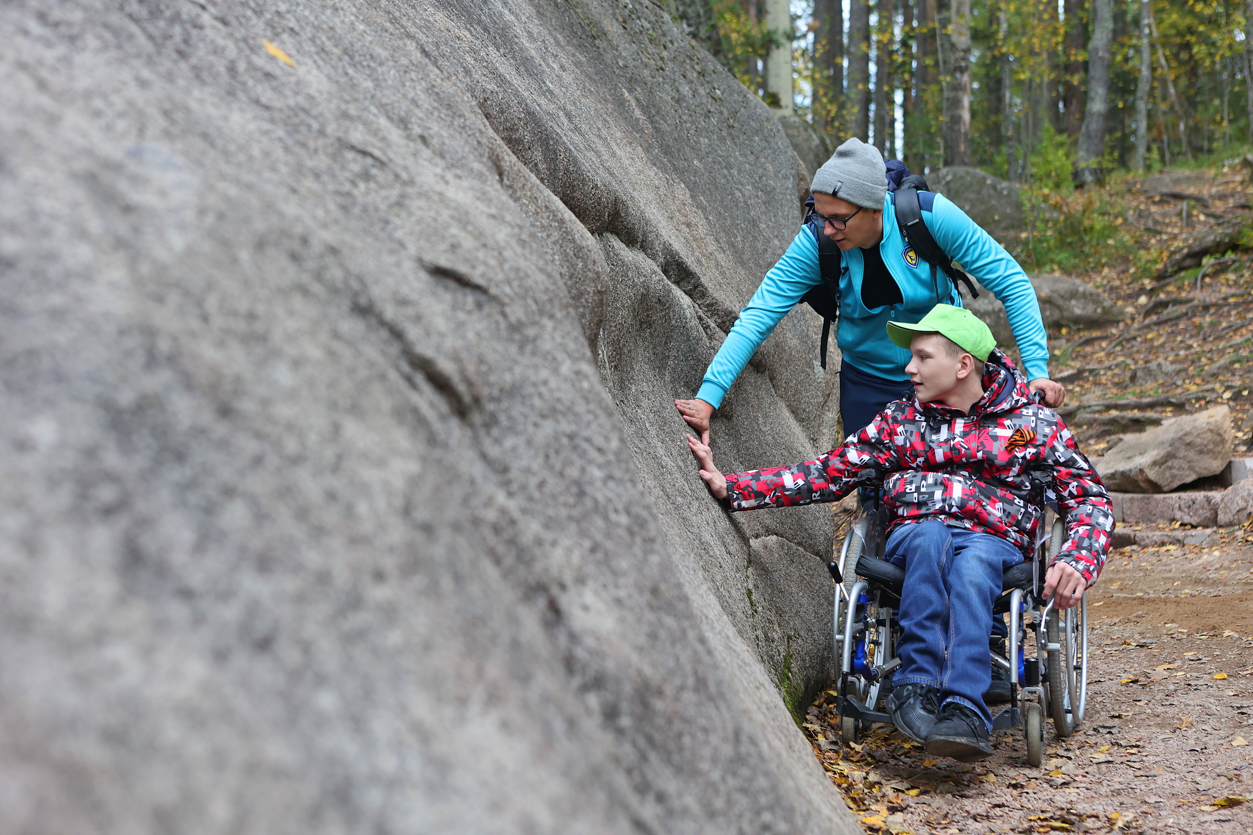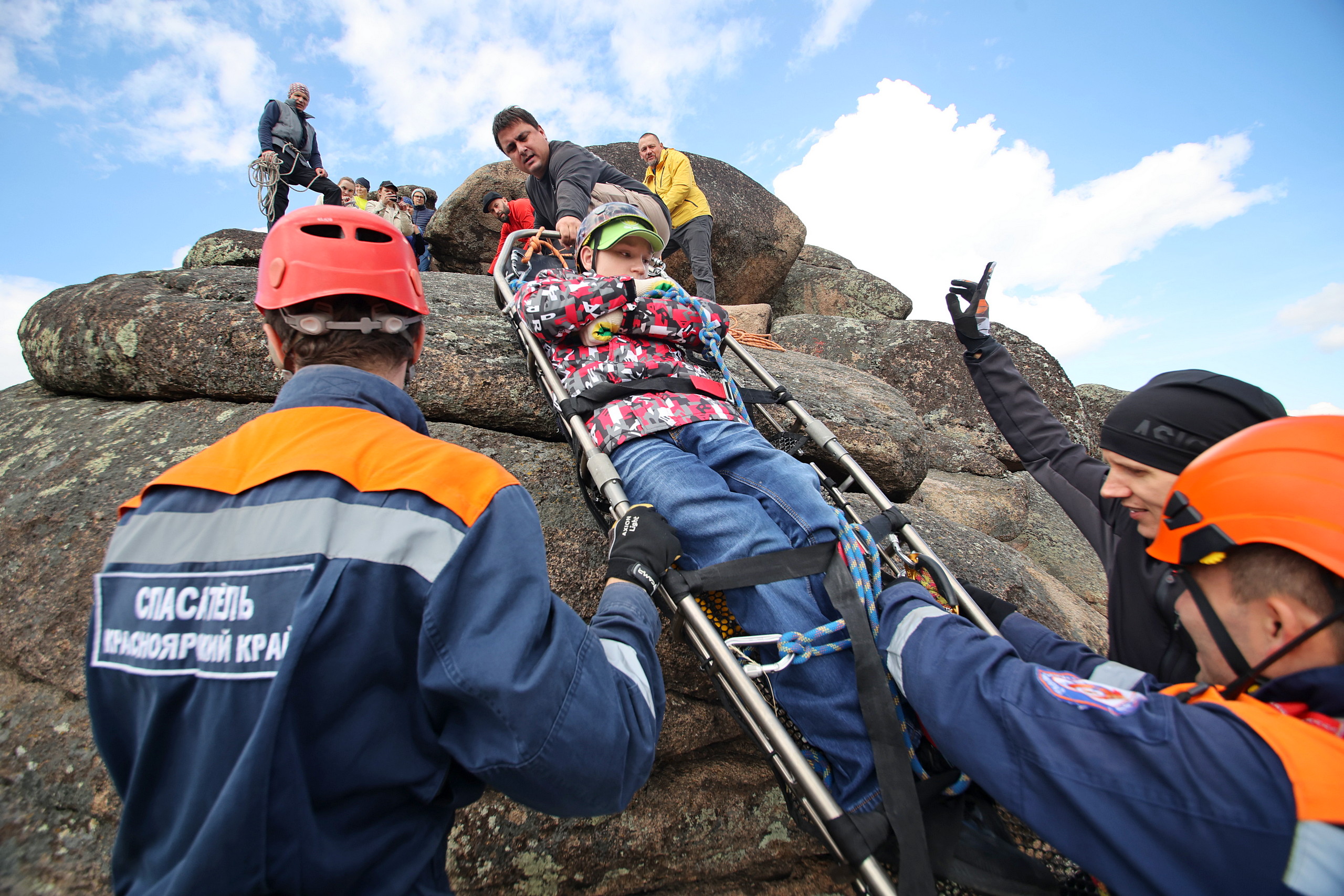 Для ребят провели экскурсию, а одному юноше - Славе Мамонову - помогли подняться на вершину Первого Столба. Юноша передвигается на коляске, поэтому забраться ему помогли волонтёры и спасатели. Для этого пришлось соорудить перила из верёвок и пустить по ним люльку.