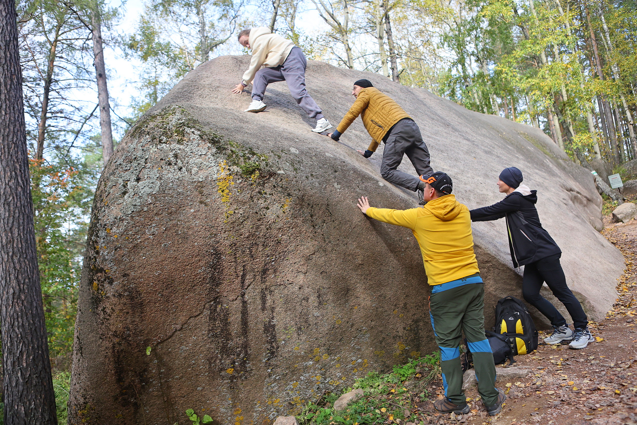 На вершине новому столбисту устроили обряд посвящения: «побили» башмаком, за что он должен был благодарить «мучителей». Елена Нига, президент общественной организации «Открытые сердца», отметила важность таких мероприятий для ребят с ОВЗ.