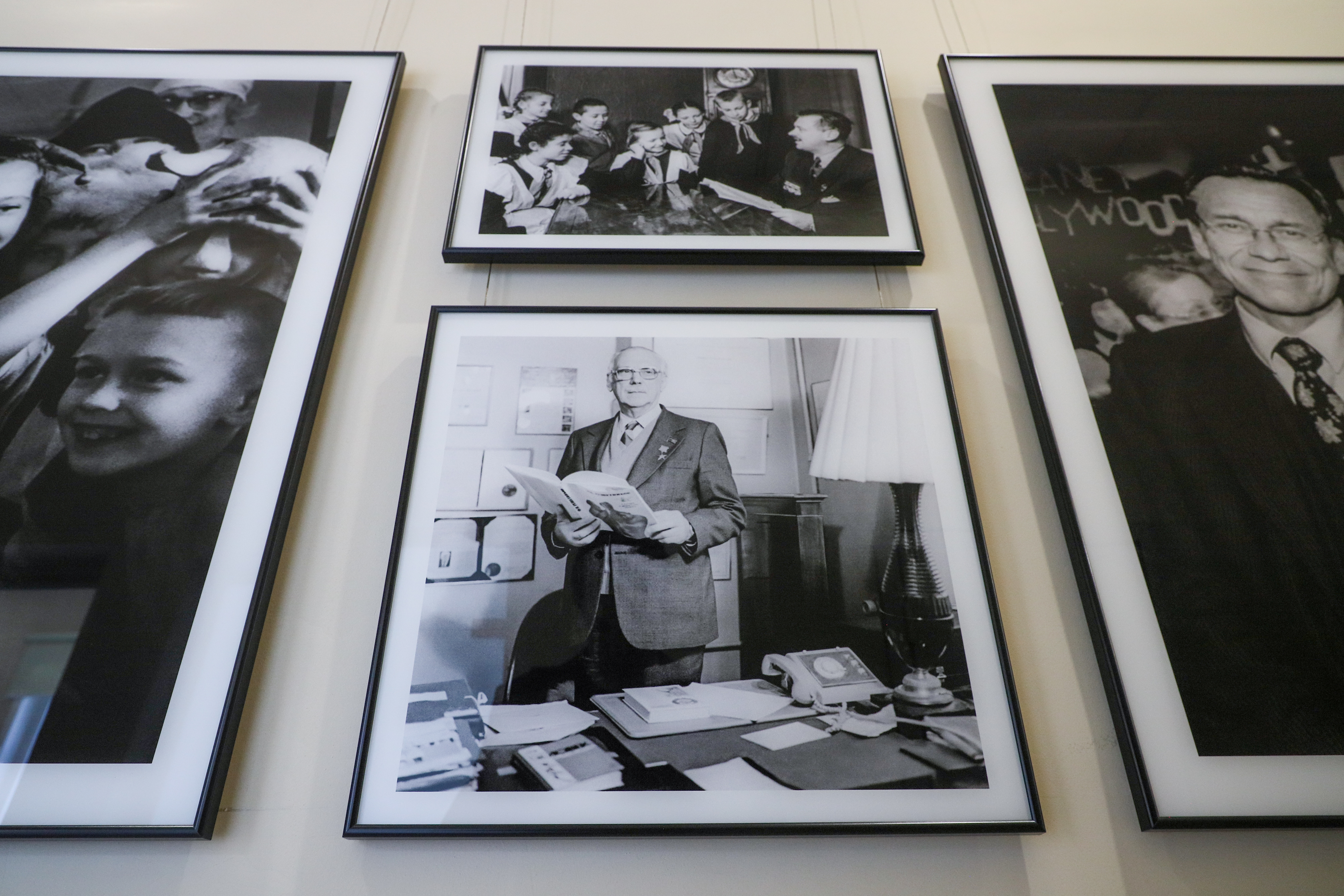 В холле гостей встречает пространство, посвящённое Сергею Михалкову. Здесь собраны уникальные экспонаты: личные вещи писателя, подарки, редкие издания. Среди них — очки, которыми он пользовался, чайная пара, а также халат, подаренный ему президентом Казахстана.