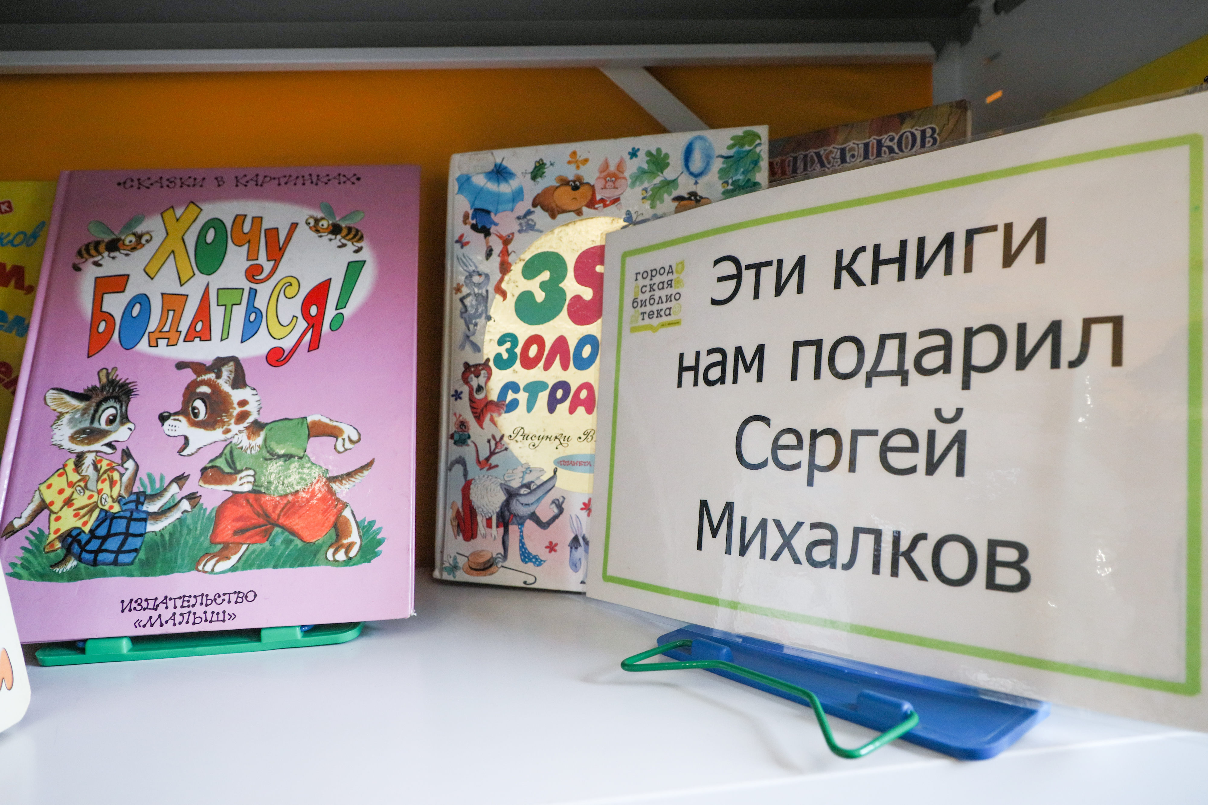 Отдельное место занимает внутриполочная выставка лауреатов международного конкурса имени Сергея Михалкова. Эти книги библиотека получает в дар от Российского фонда культуры.