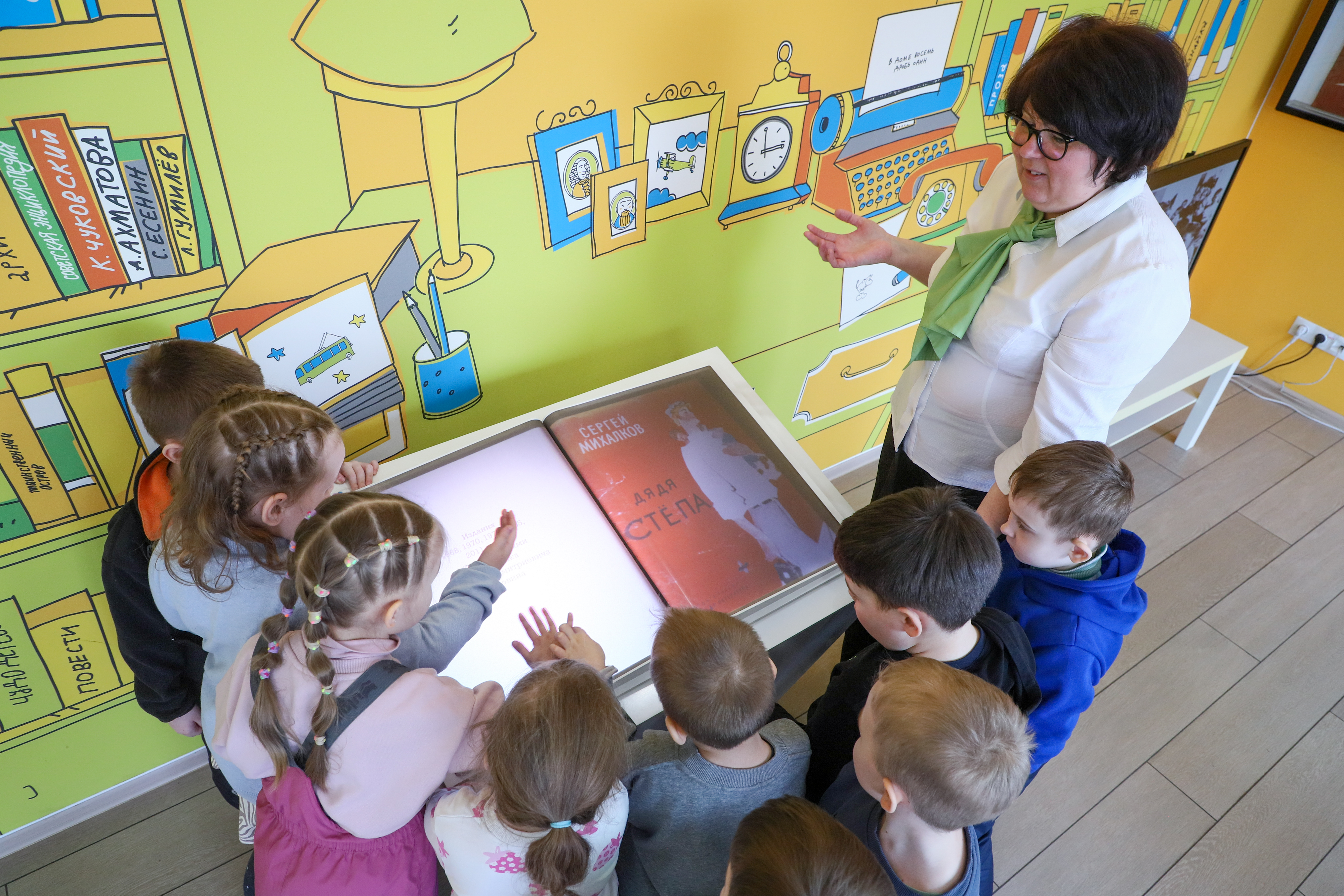 Рядом расположилась выставка «Планета Михалкова», созданная к юбилейному году. Она не просто рассказывает о творчестве писателя, а вовлекает в игру.