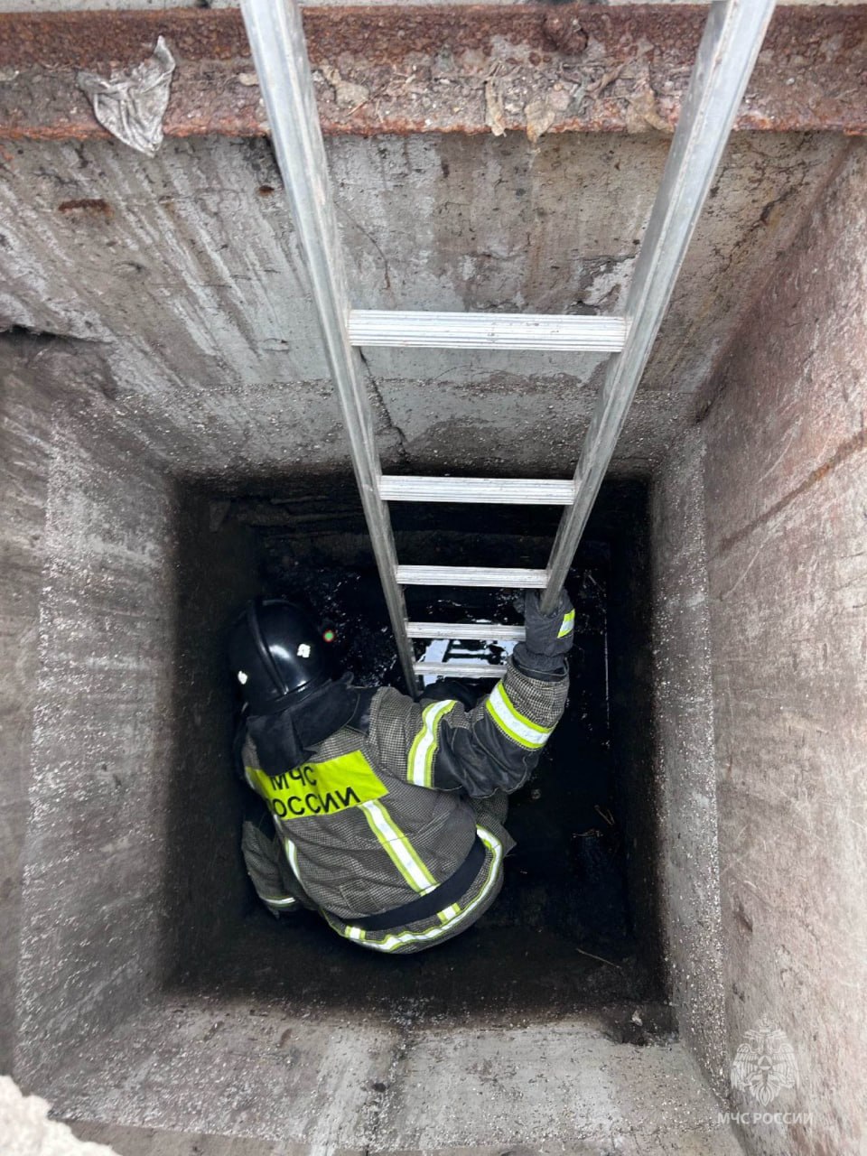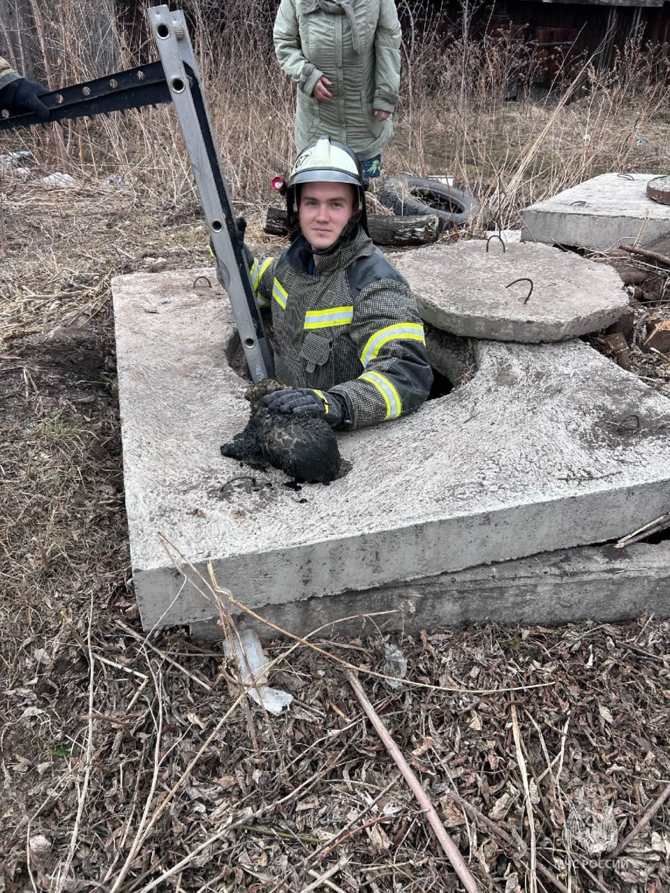 На место приехали сотрудники МЧС. Они установили лестницу, один из них спустился вниз и достал щенка. Малыш был очень напуган, но главное — жив. Его передали хозяйке.