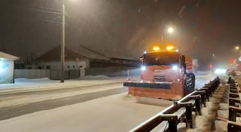 Снег продолжает идти, поэтому днём на уборку дорог и тротуаров выйдет дневная смена.