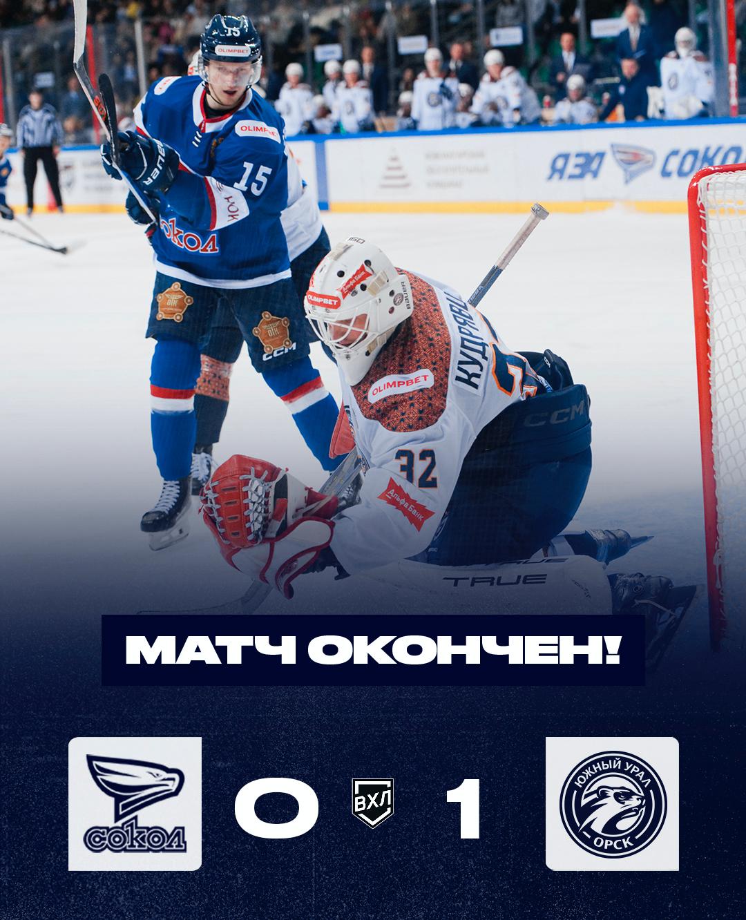 Красноярский «Сокол» проиграл орскому «Южному Уралу» в домашнем матче регулярного чемпионата ВХЛ. Встреча завершилась с счетом 0:1.