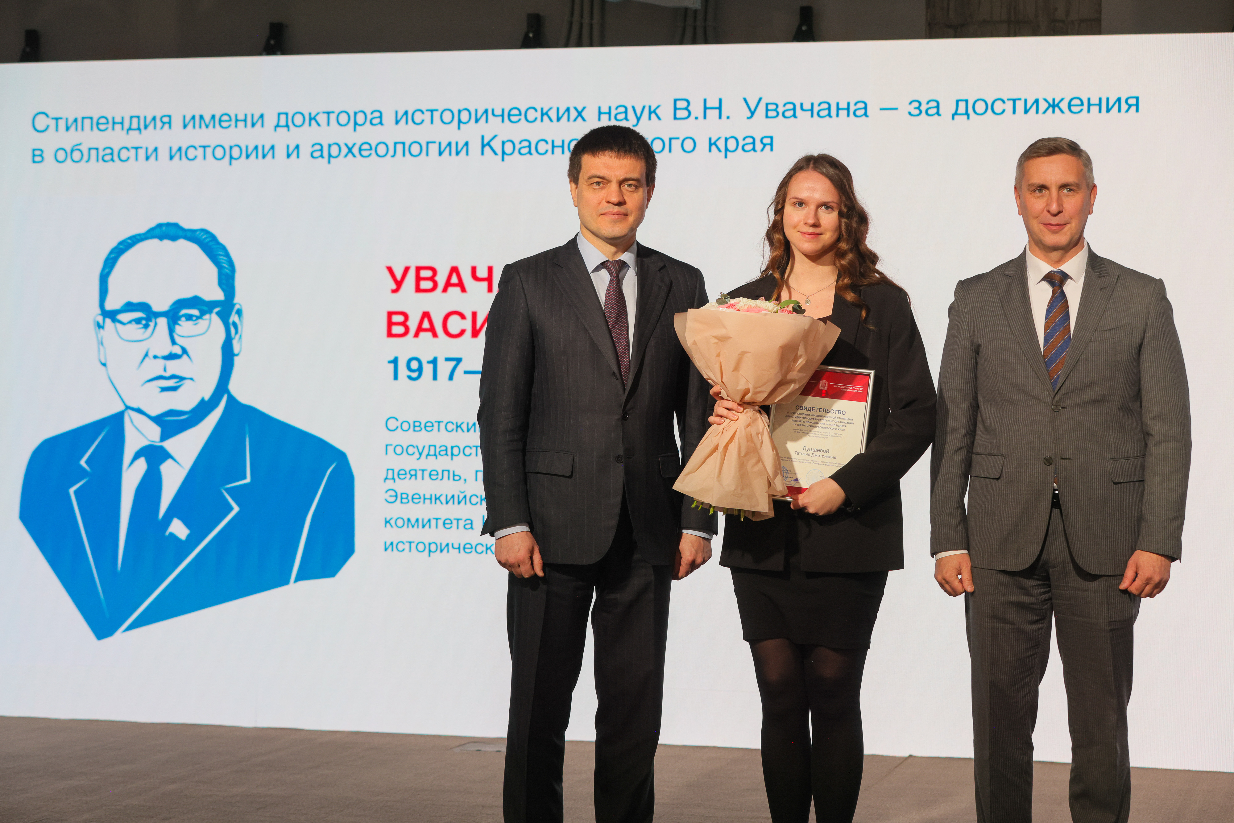 — Это особая честь и ответственность – быть лауреатом краевой именной стипендии. Каждый из вас будет множить славу Красноярья – научную, образовательную, спортивную, творческую, по каждому из направлений, — подчеркнул Михаил Котюков. —  И мне очень хотелось бы, чтобы через несколько лет и ваши фамилии были среди именных стипендий, которыми будут отмечаться успехи красноярцев, живущих здесь через десятилетия на территории Красноярского края. Поэтому поздравляю вас с этим результатом и поздравляю всех с Днём российского студенчества!