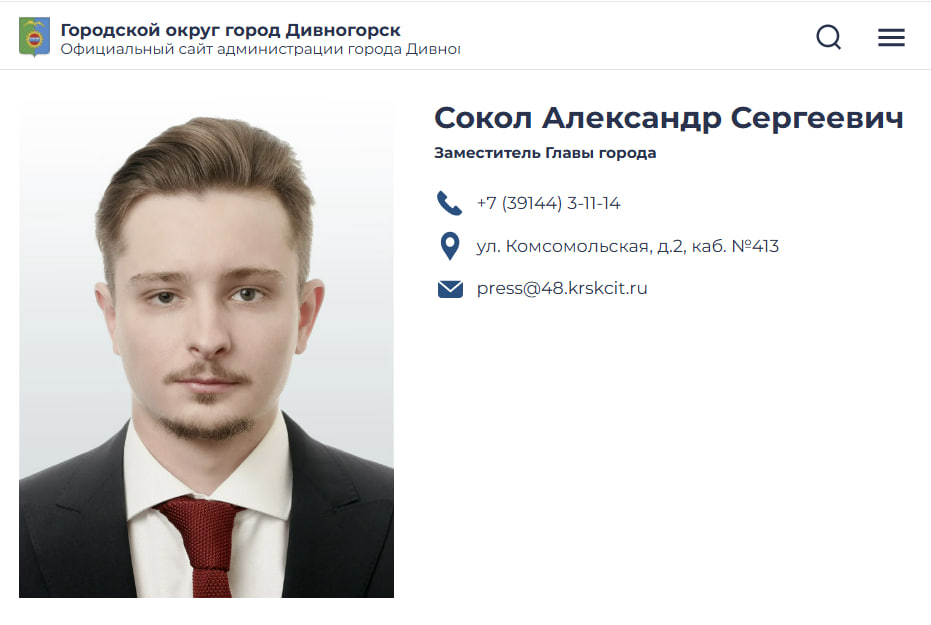 Информация о том, что Александр Сокол стал вице-мэром Дивногорска, размещена на официальном сайте городской администрации.
