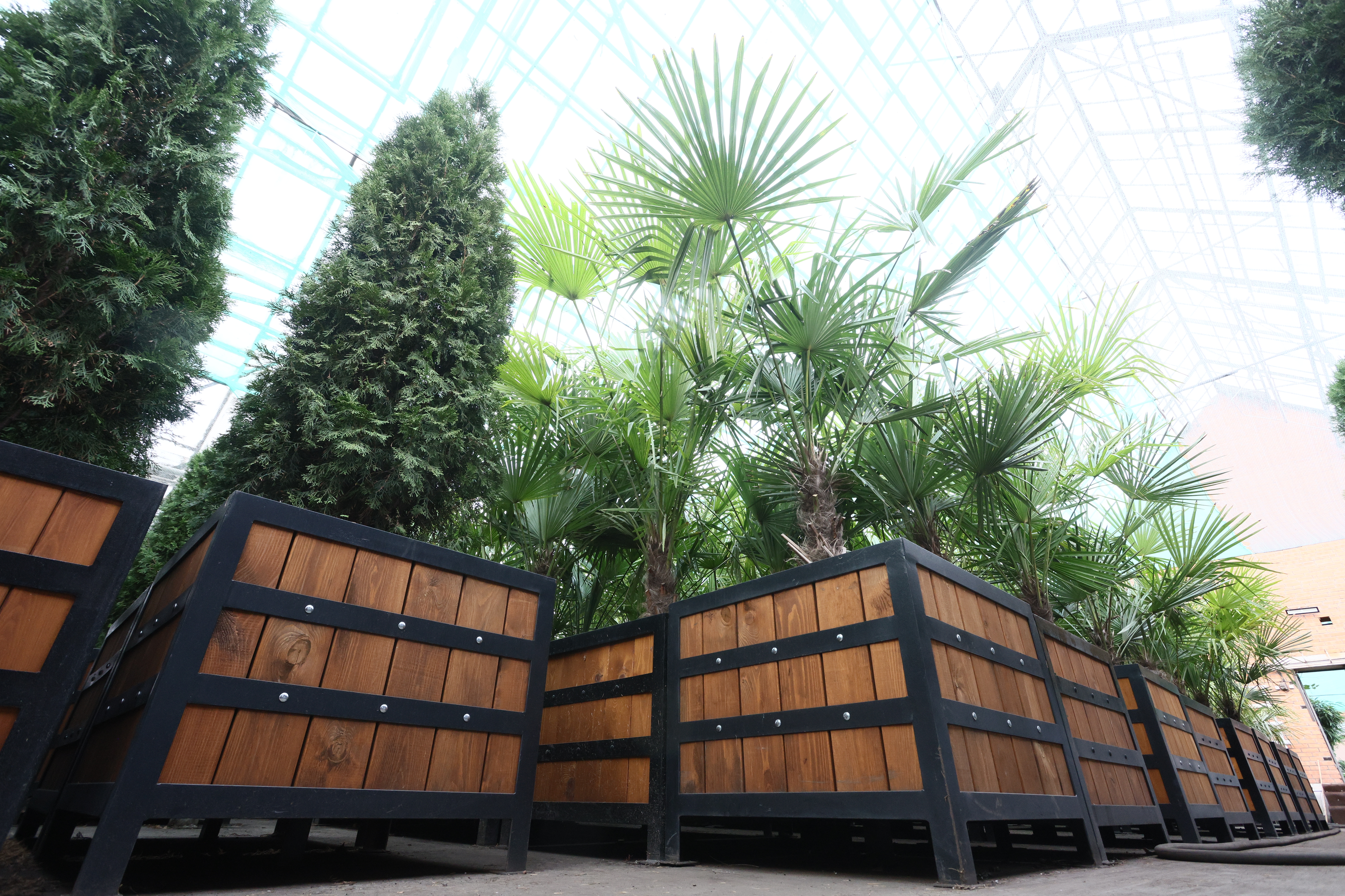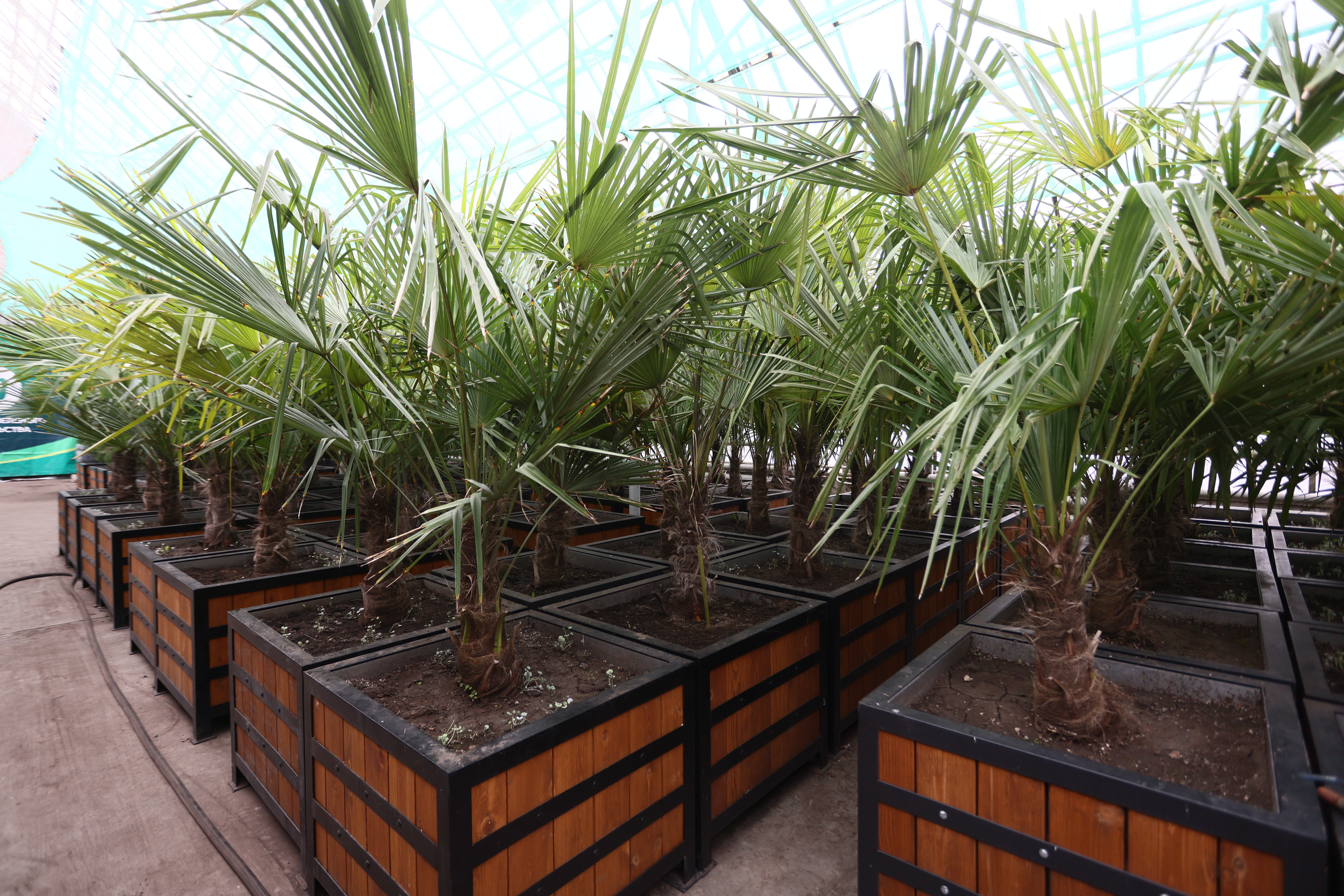 Некоторые пальмы в Красноярске дорастают до таких размеров, что в теплицах уже не помещаются. Благо их с радостью принимают торговые комплексы и другие организации, имеющие большие и просторные помещения.