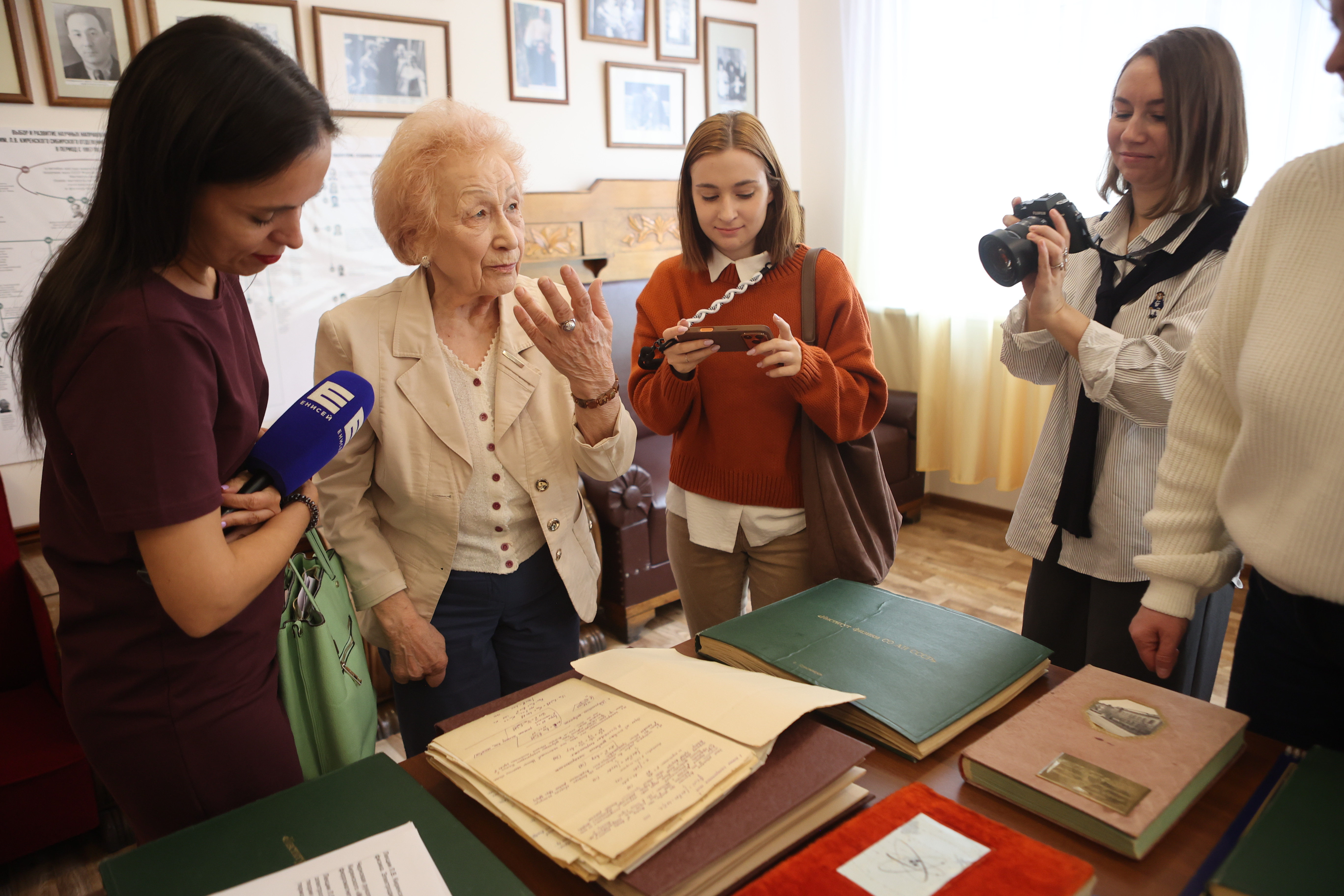 Ирина Самсоновна и Людмила Михайловна перенесли журналистов в атмосферу довоенного Красноярска, позволили увидеть город и весь регион глазами выпускника Московского государственного университета — представителя научной интеллигенции. “В 1940 году промышленность была представлена лесозаготовкой, золотодобычей, уже построили Красмаш, в задачи которого входило изготовление оборудования для аффинажного производства. Работали паровозоремонтный завод, обувная фабрика. Вузов в тот период в краевом центре было три: педагогический, медицинский и лесотехнический”.