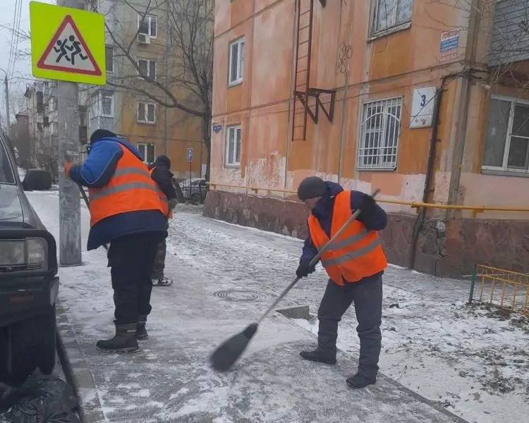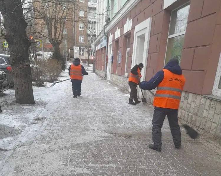 Тротуары Красноярска от гололеда сегодня чистит 231 человек