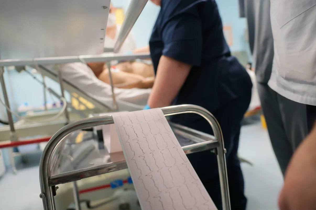 Однако в Краевой больнице действует строгое правило: при любых болях в грудной клетке пациентам сразу делают ЭКГ, чтобы исключить острый коронарный синдром. Несмотря на молодой возраст, кардиограмма показала тревожные изменения.
