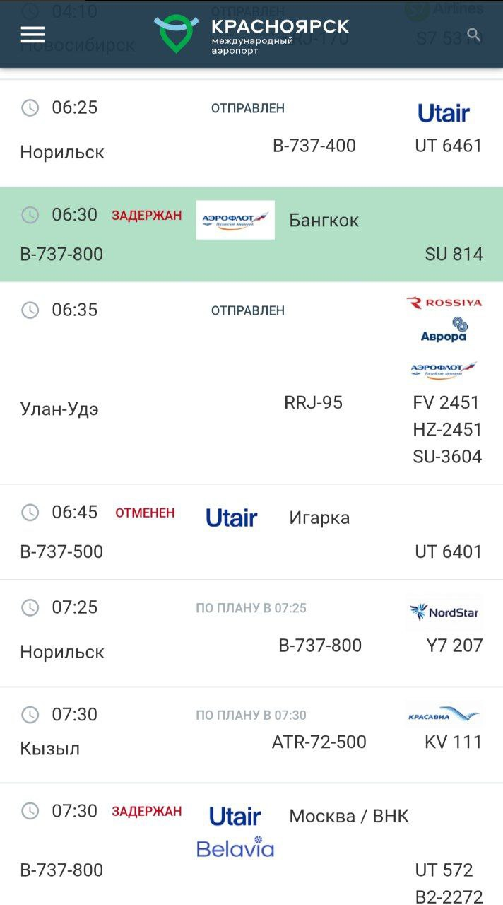 Актуальную информацию о времени прилётов и вылетов можно проверить на сайте аэропорта KJA.