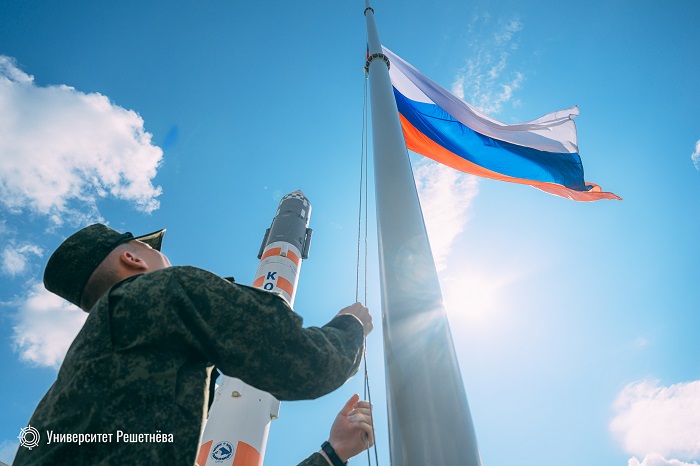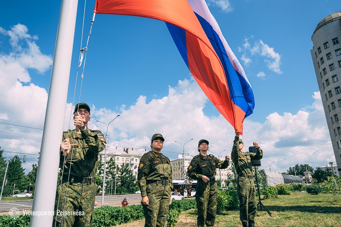 В День России красноярский Университет Решетнёва поднял государственный флаг на 15-метровую высоту