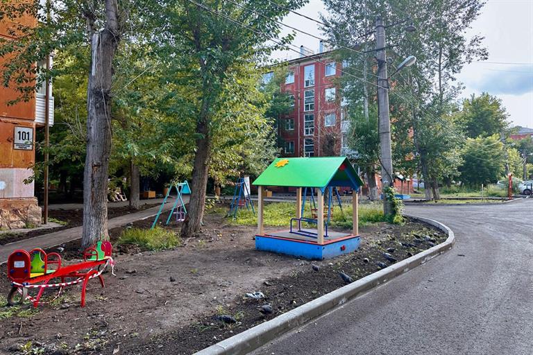 Также завершаются работы во дворе на проспекте им. газеты «Красноярский рабочий», 89. Здесь отремонтировали проезд и тротуары, установили песочницу, качели и теннисный стол. Рабочим предстоит засеять газон.