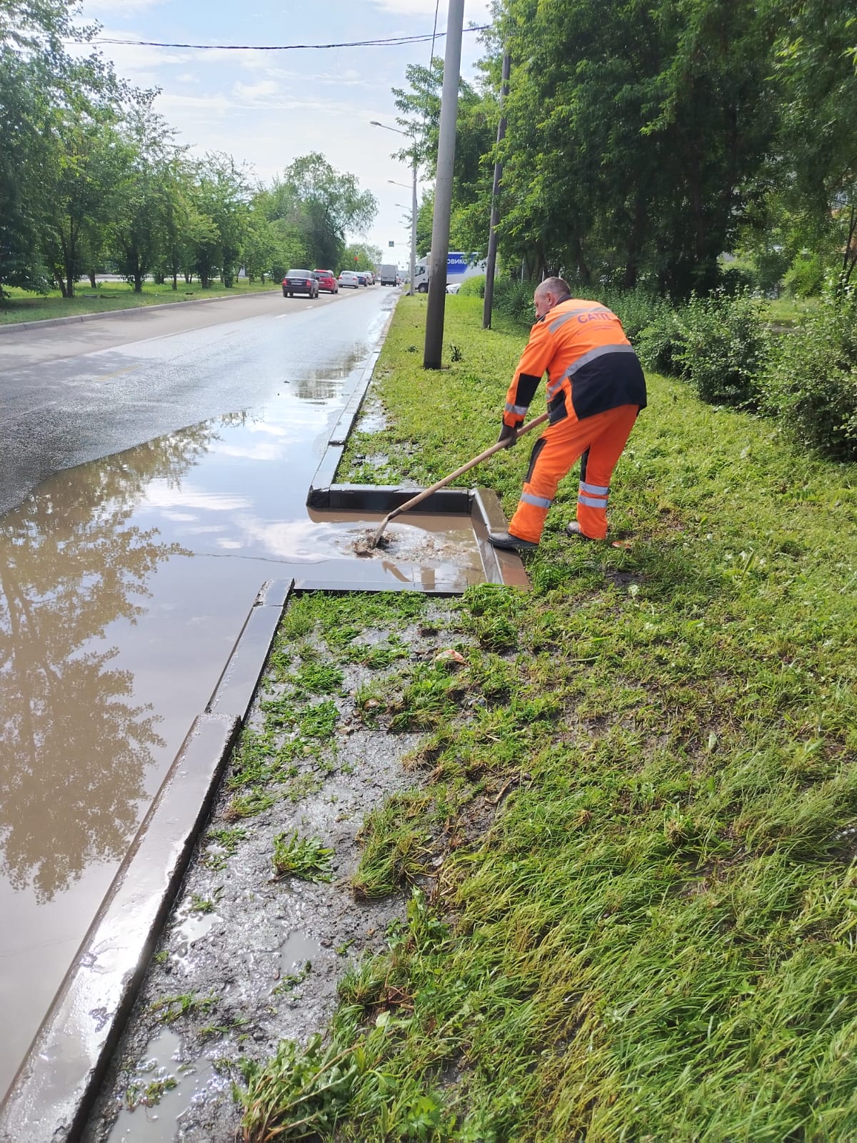В Красноярске дорожники чистят ливневую канализацию после сильных осадков