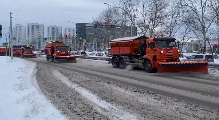 На выходных сотрудники красноярской дорожной службы уделили особое внимание уборке снега с проезжей части. Комбинированные дорожные машины обрабатывали центральные магистрали и социально значимые улицы с маршрутами пассажирских автобусов. В то же время большие снегоуборочные комплекты работали на Николаевском мосту, улицах Калинина, Свердловской, Горького, Профсоюзов, Ленина, Белинского, Партизана Железняка, Высотной, Тотмина; на проспектах Свободном и Красноярском Рабочем, и других участках.