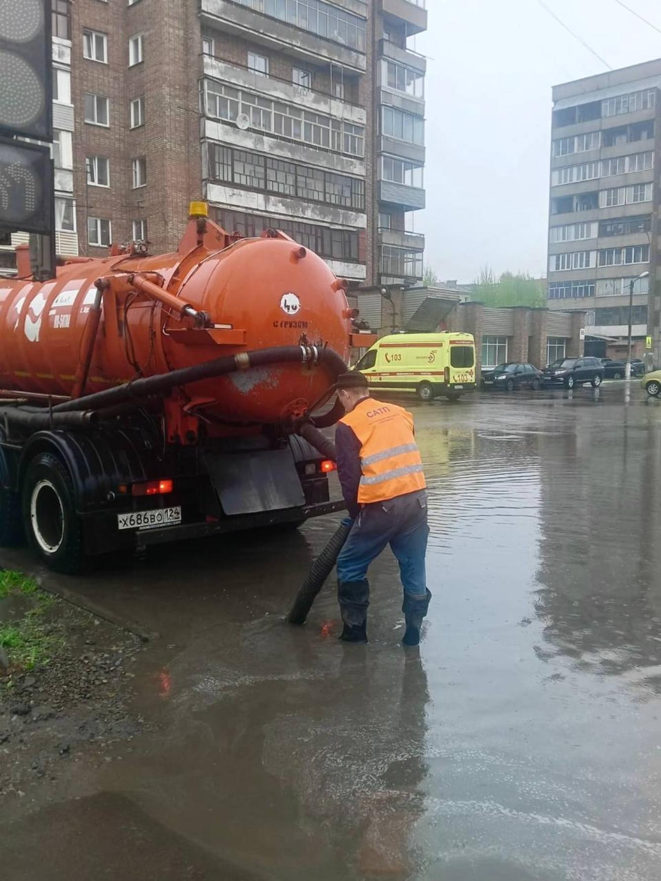 В Красноярске коммунальные службы устраняют последствия дождя