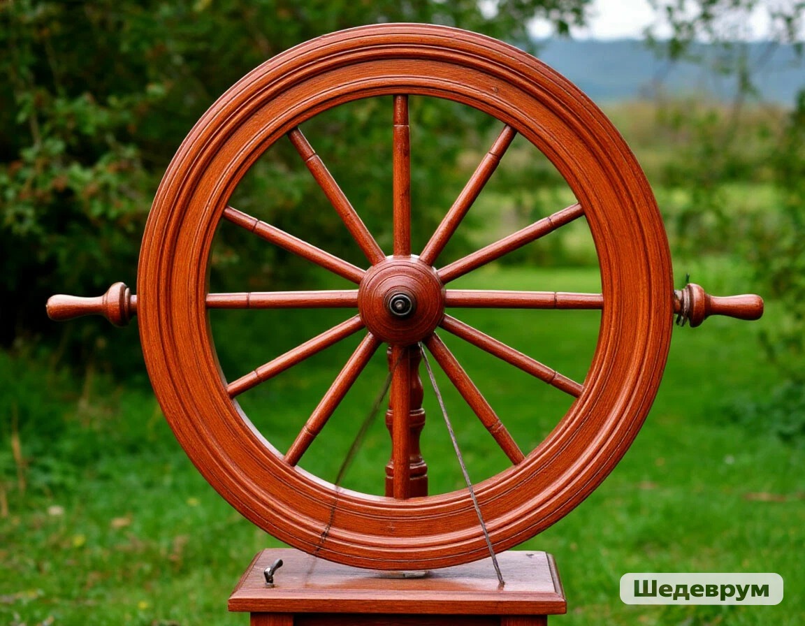 Особенность лота в том, что это не просто декоративный элемент интерьера — прялка полностью рабочая. По словам продавца, механизм сохранился и продолжает функционировать, несмотря на возраст.