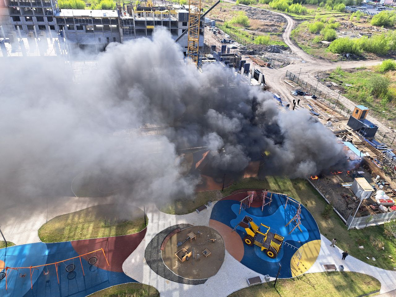Сегодня, 14 мая, на строительной площадке возле дома на Свердловской, 6Л вспыхнул контейнер рабочих. Рядом возводят ЖК Премьер Парк. Очевидцы предполагают, что горит пенопласт и другие материалы. В воздухе стоит сильный запах, а густой черный дым поднимается высоко над землей.