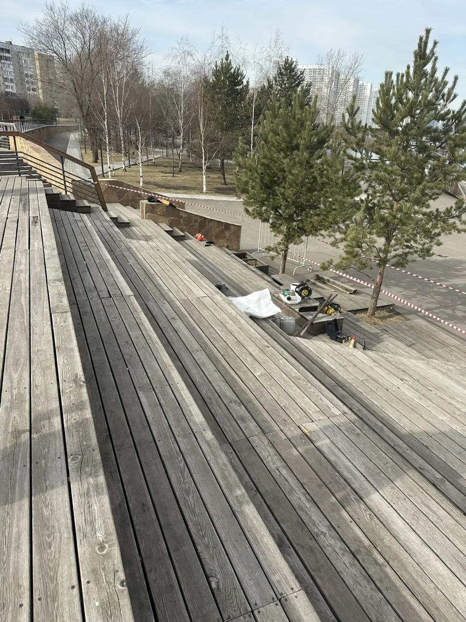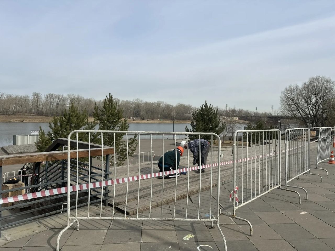 На Ярыгинской набережной приступили к ремонту амфитеатра. Подрядчик уже огородил территорию и вскоре начнет замену деревянного покрытия.