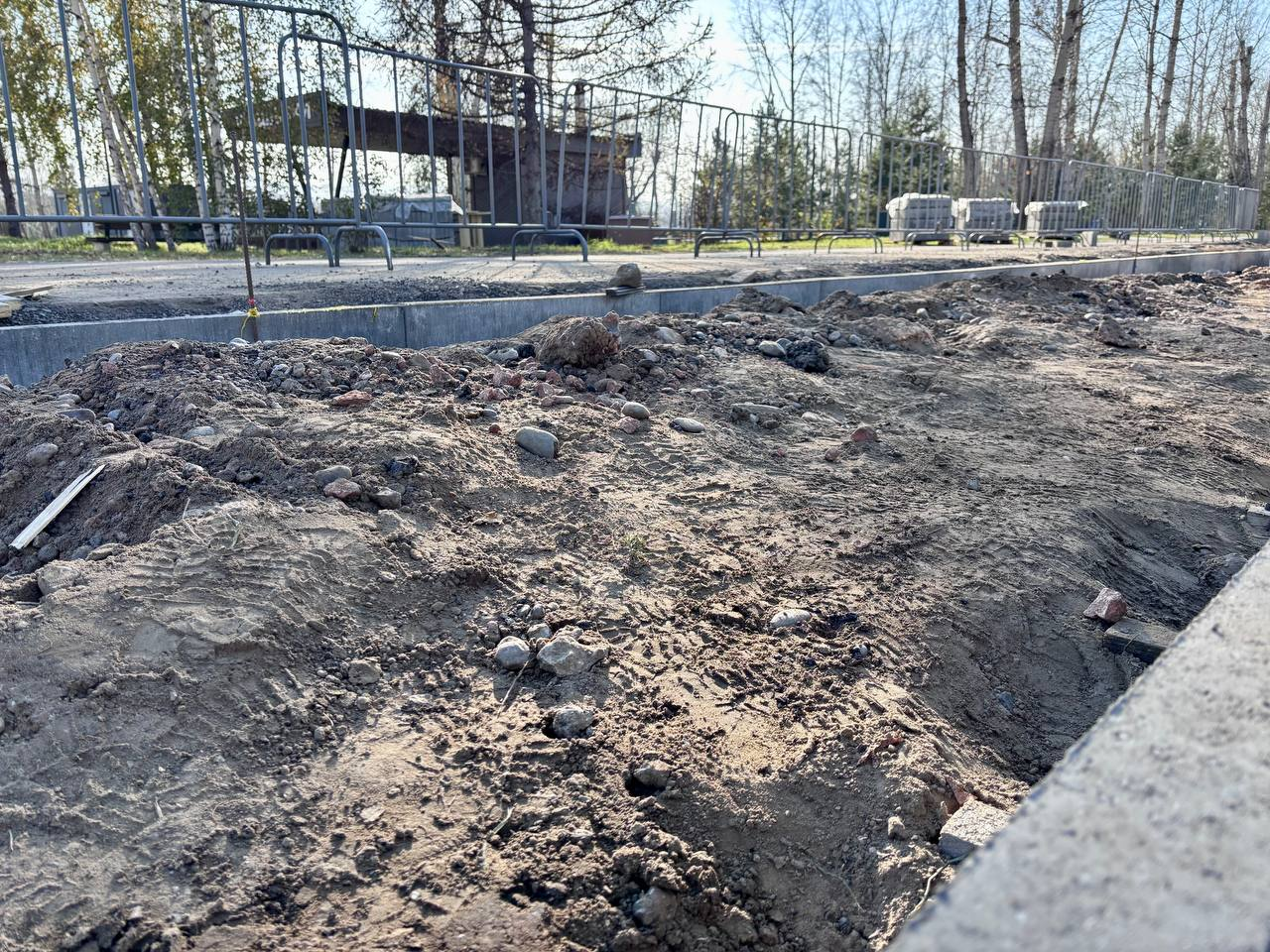 На площадке «Маленький Татышев» в Татышев-парке ведутся работы по замене старого ПЩС-покрытия на брусчатку вдоль территории. Также обновляют покрытие под световыми качелями «Луна»: сначала уложен гео-текстиль, а сверху — каучуковая крошка, обеспечивающая амортизацию.
