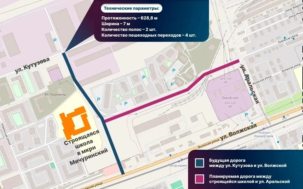 Участок протяженностью 628 метров пройдет от улицы Волжской вдоль дома на Апрельской, 5и и выйдет на улицу Кутузова. Дорога будет двухполосной, с тротуарами по обеим сторонам, пешеходными переходами и светофорами для безопасности жителей и школьников.