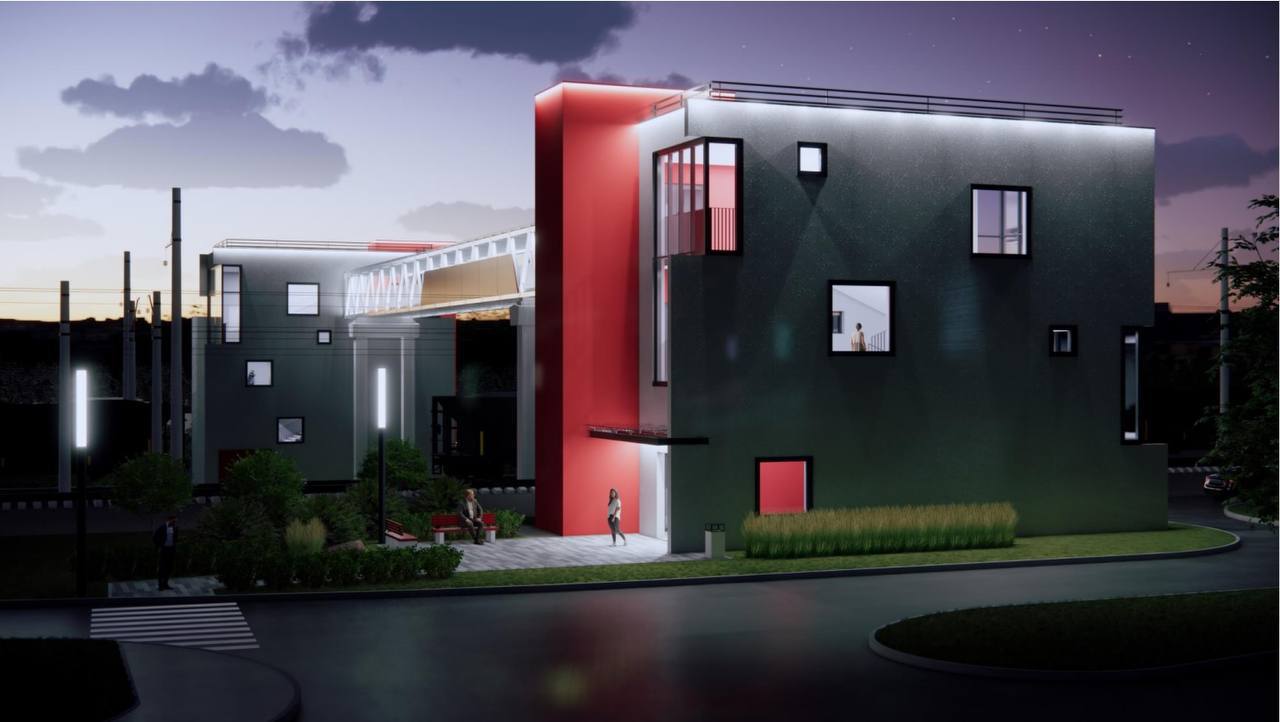 Мост будет выполнен из монолитного бетона и легкой алюминиевой конструкции. Его окрасят в фирменные цвета РЖД, так как он пересекает железную дорогу. Похожий стиль уже использовали при строительстве перехода на улице Семафорной.