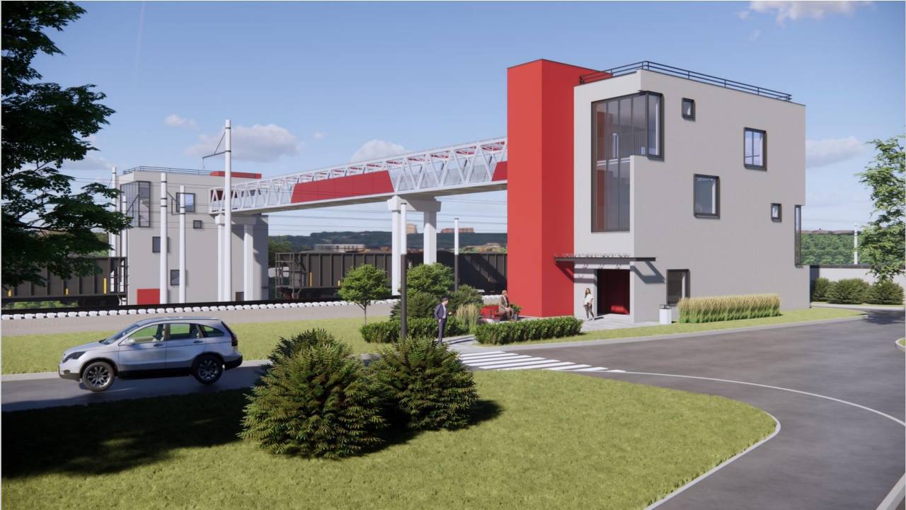 Мост будет выполнен из монолитного бетона и легкой алюминиевой конструкции. Его окрасят в фирменные цвета РЖД, так как он пересекает железную дорогу. Похожий стиль уже использовали при строительстве перехода на улице Семафорной.