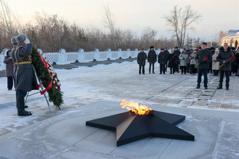 Память о погибших при исполнении служебного и воинского долга почтили минутой молчания и троекратным оружейным залпом.