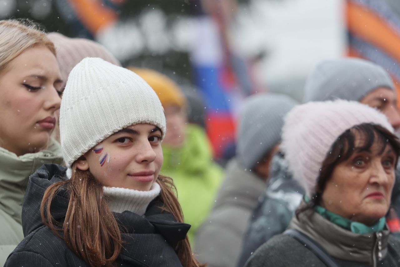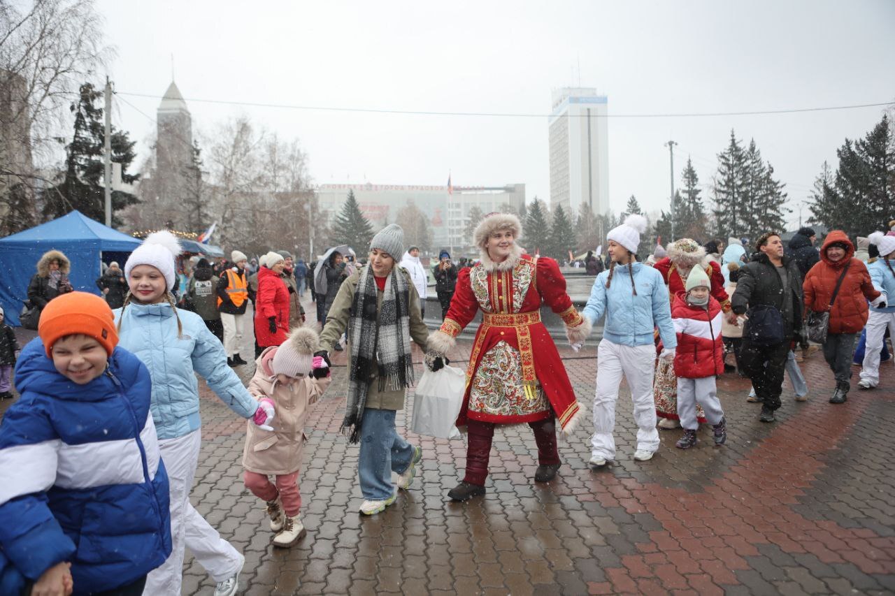 Даже начавшийся снег с дождём не испортил горожанам праздничного настроения!