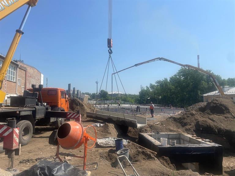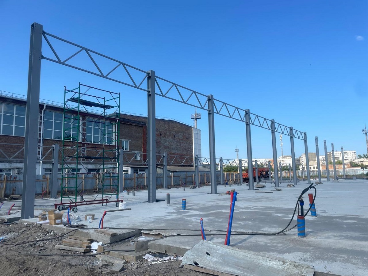 Подрядчик уже демонтировал старый бетонный забор и опоры освещения. Рабочие приступили к закладке фундамента и инженерных сетей. Следующим этапом станет монтаж стен и кровли здания.