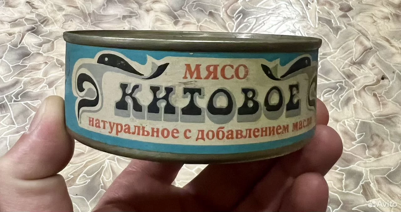 В Красноярске продают советские консервы из китового мяса. Судя по фото, баночка произведена ещё в 1978 году, и долгое время пылилась в кладовой.