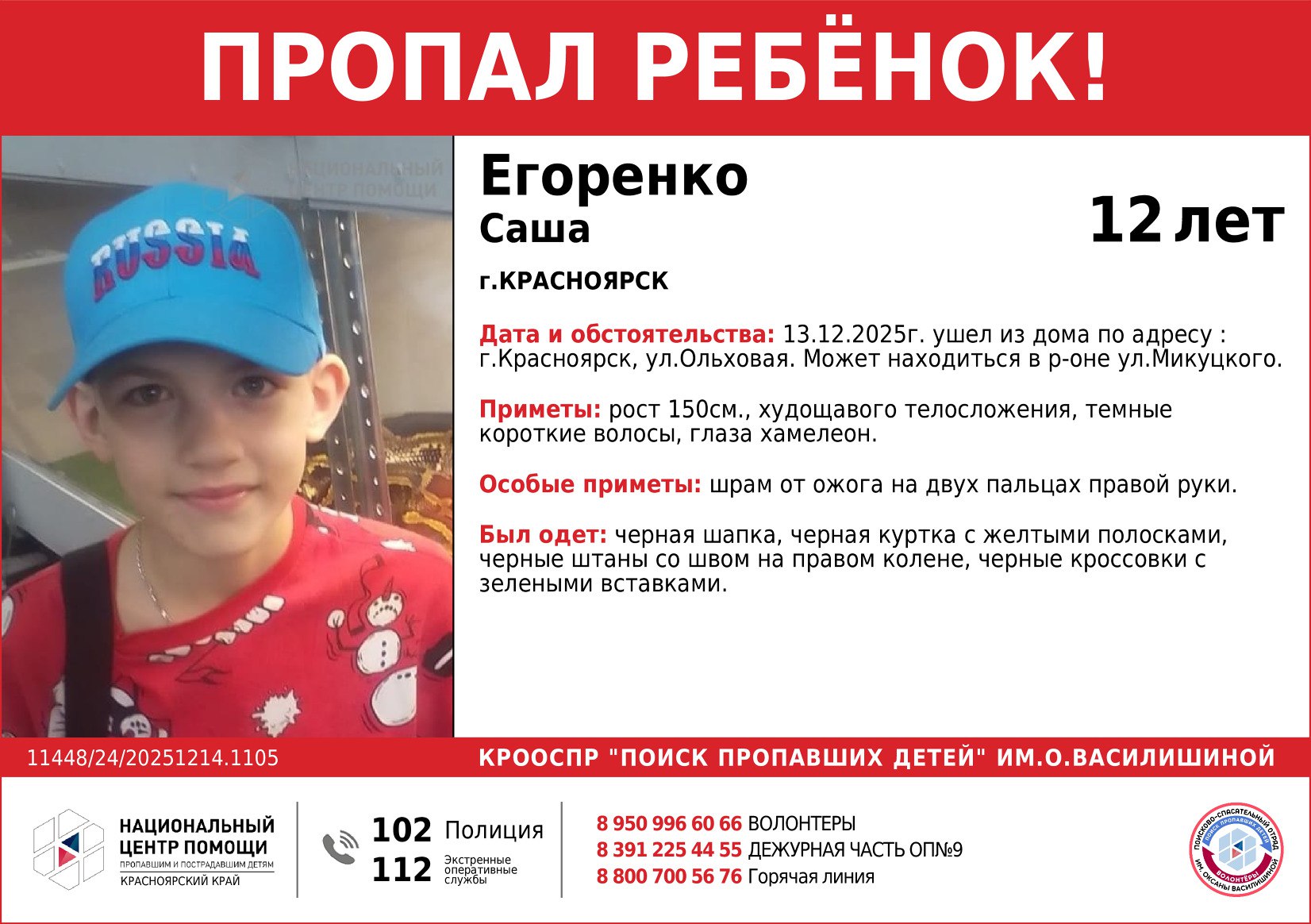 Рост 150 см, худощавого телосложения, темные короткие волосы, глаза хамелеон. Ребёнок был одет во всё черное: шапка, куртка с жёлтыми полосками, штаны со швом на правом колене, кроссовки с зелёными вставками.