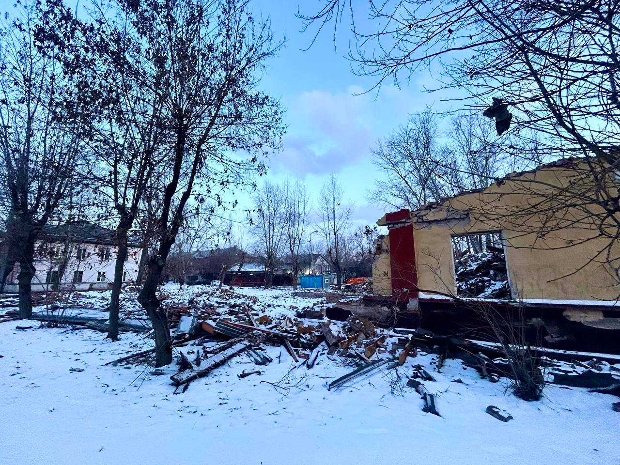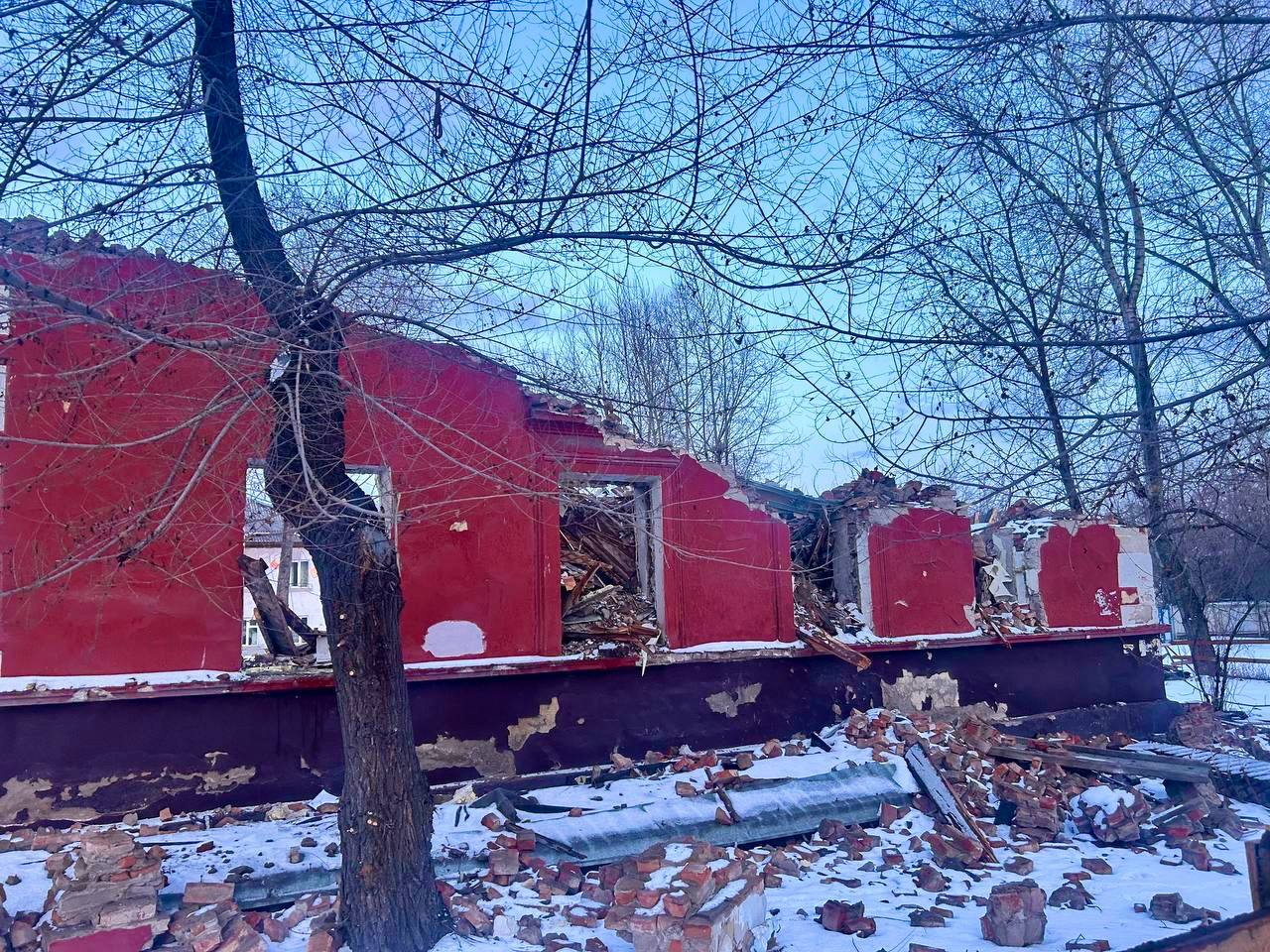 В Железнодорожном районе Красноярска почти завершили снос аварийного дома по улице Калинина, 9. Двухэтажное кирпичное здание построили в 1949 году. Аварийным его признали в 2020, его износ составлял больше 70 процентов.
