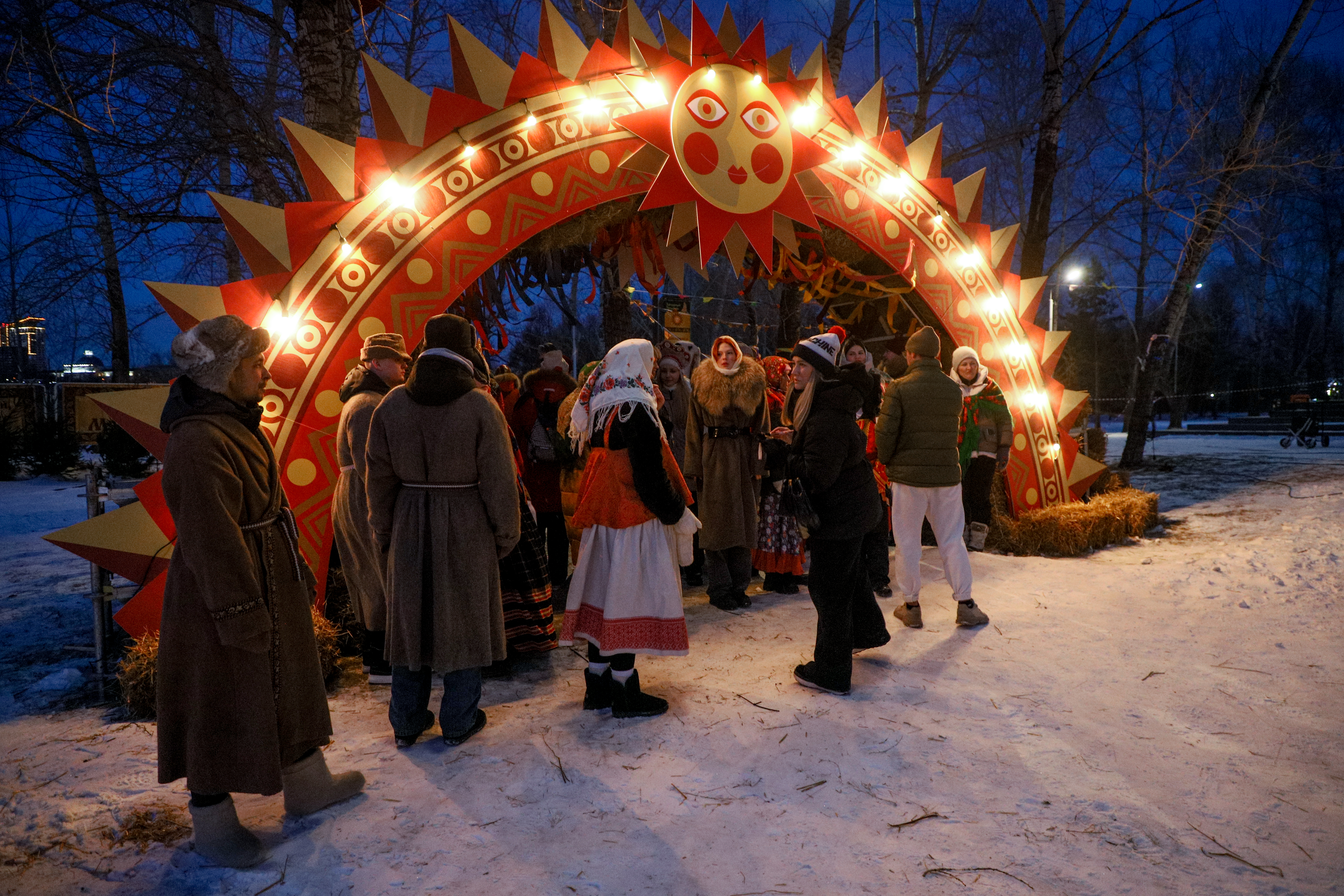 Огромное чучело Масленицы, торговые прилавки и блины появились на острове Татышев. Однако это не подготовка к городскому празднику — здесь кинокомпания Legio Felix снимает фильм «Масленица».