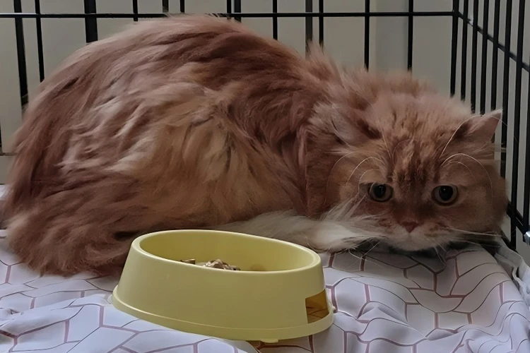 Условия приюта, достойные и приятные для уличных кошек, кота пугали. Кошек он тоже боялся, поэтому рыжика пришлось определить в клетку. Кот забился в угол, перестал пить и есть. Чтобы кормить кота, ему давали успокоительное, в конце концов – поставили трубку в пищевод.
