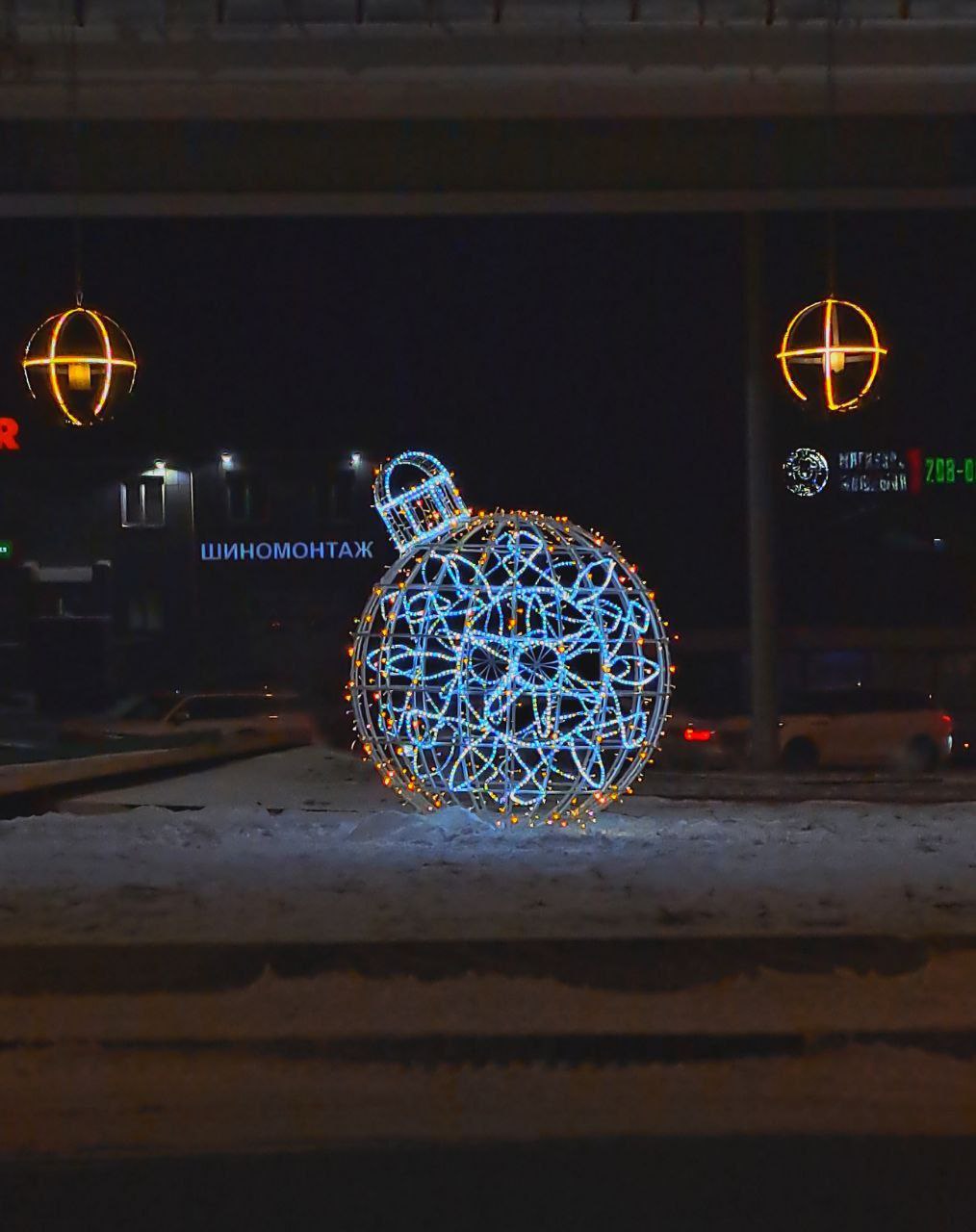 В Красноярске установили светящиеся шары на кольце Калинина – Маерчака