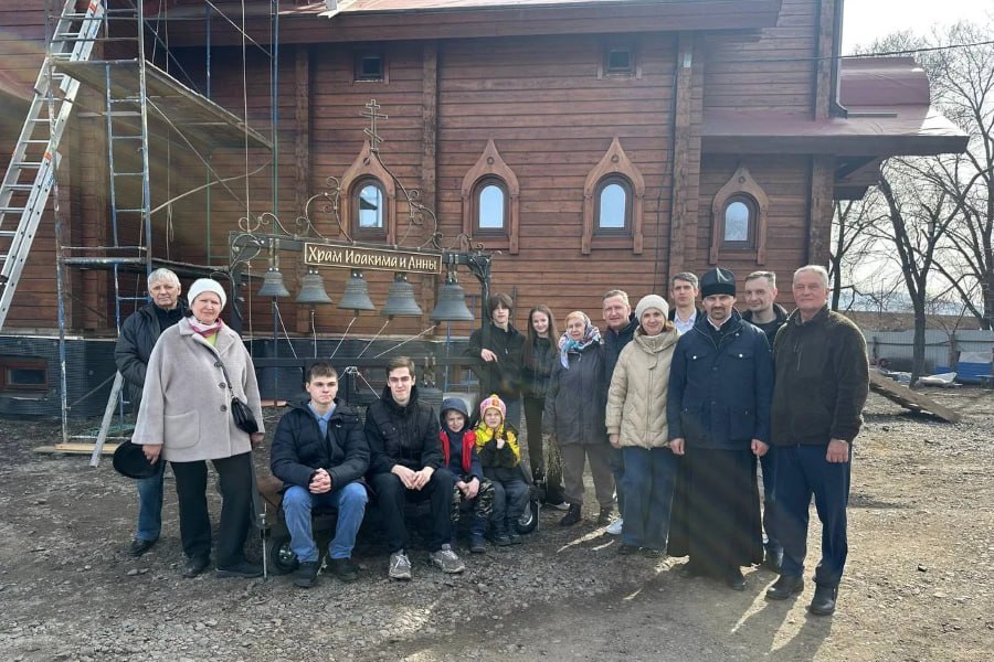 В храме праведных Иоакима и Анны на Стрелке появилась передвижная звонница. Ее изготовили звонарь Станислав Савчук и мастер Анатолий Яремчук, рассказали в Красноярской митрополии.