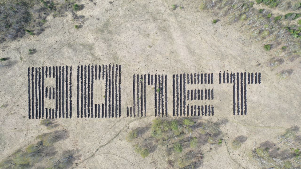 В Емельяновском районе высадили деревья в виде надписи «80 лет», посвященной Великой Победе.