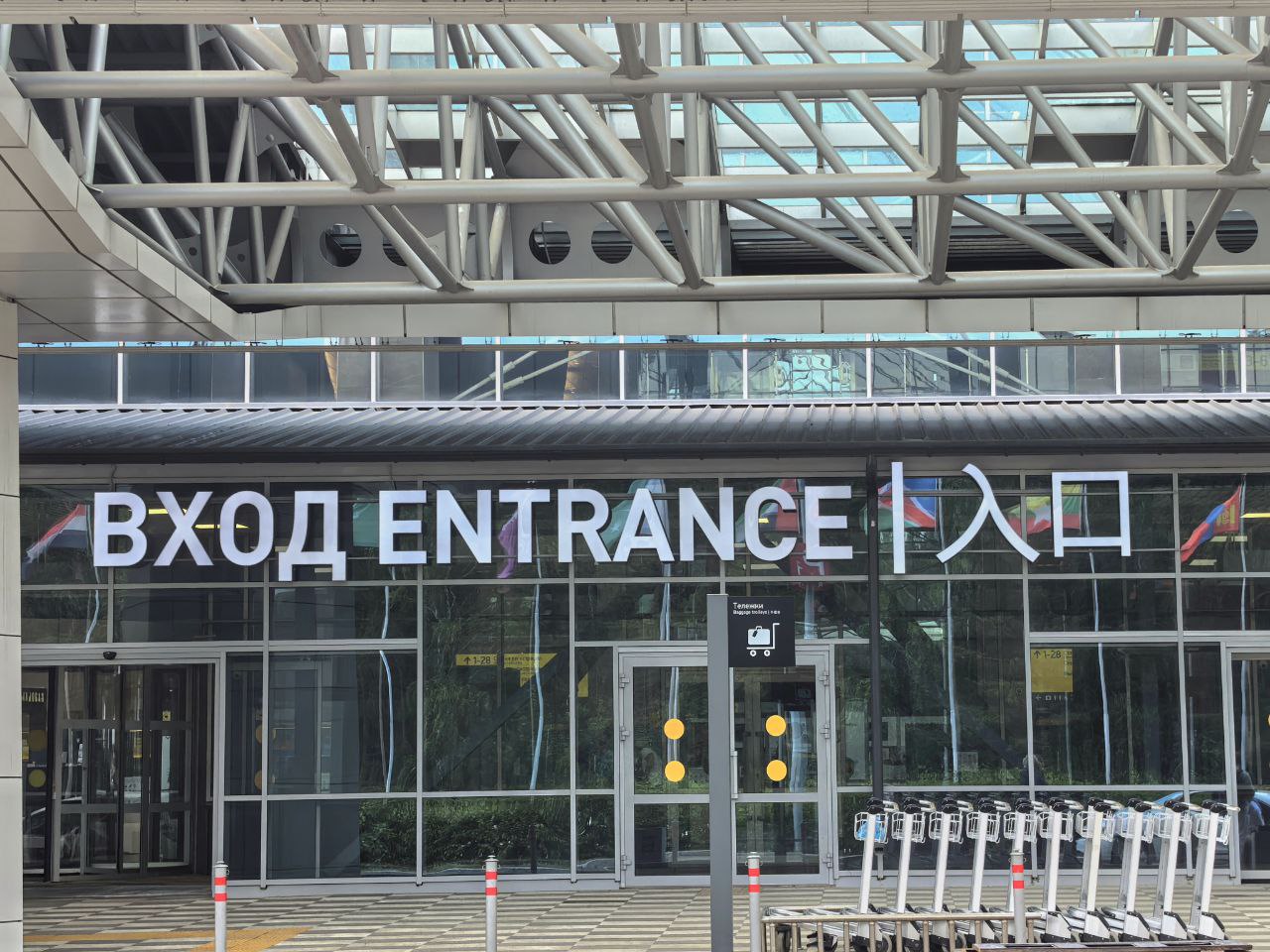 Так, теперь главный вход в пассажирский терминал начинается с павильона, который сохраняет тепло в зоне досмотра и во всем аэровокзале. Также на новой входной группе добавлена вывеска на китайском языке