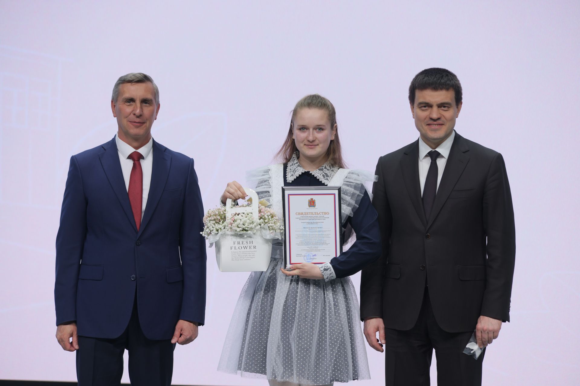 Губернатор Михаил Котюков вместе с председателем Законодательного Собрания Алексеем Додатко вручили свидетельства о присуждении краевых именных стипендий 38 школьникам из разных территорий Красноярского края. Награждение прошло в Национальном центре «Россия» на Енисее.