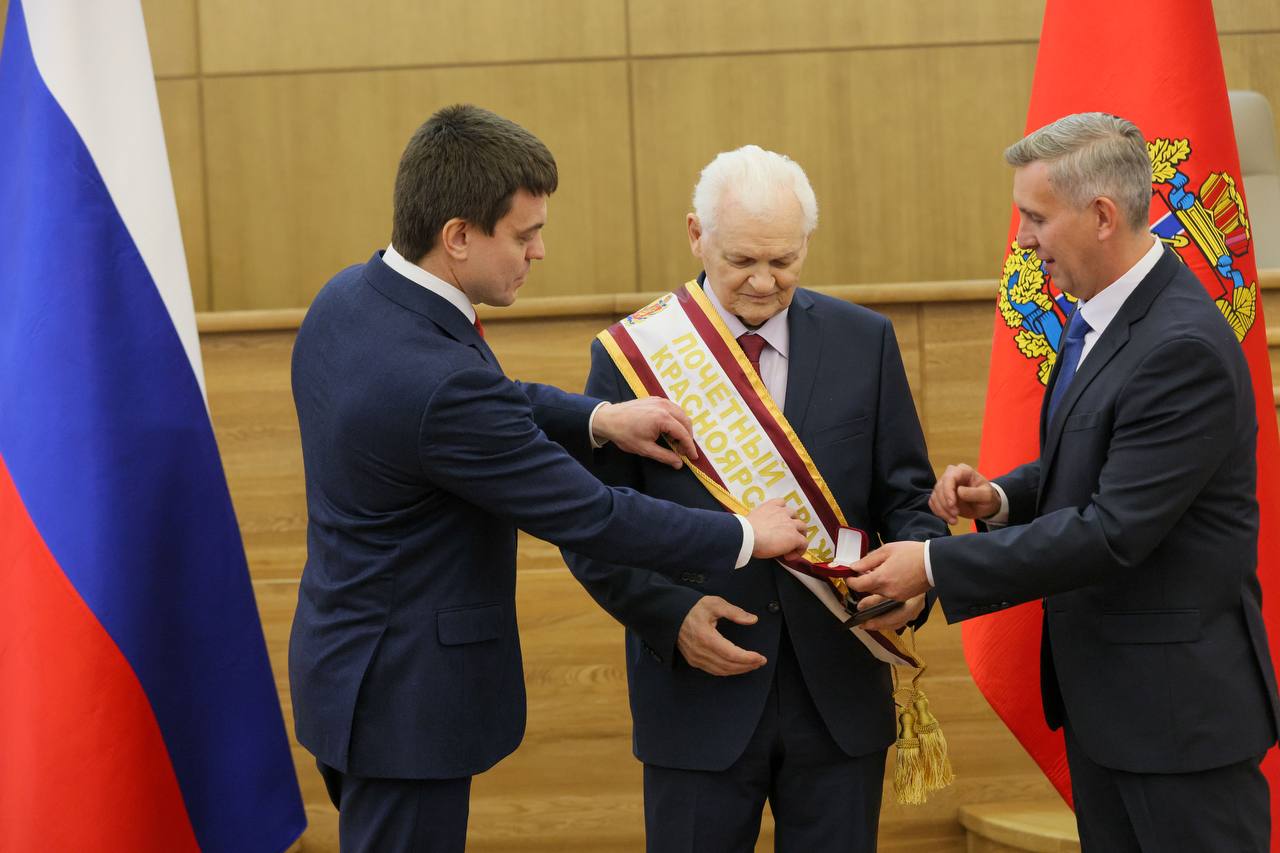 Ленту, медаль, нагрудный знак и удостоверения им вручили Губернатор края Михаил Котюков и председатель Законодательного Cобрания региона Алексей Додатко.