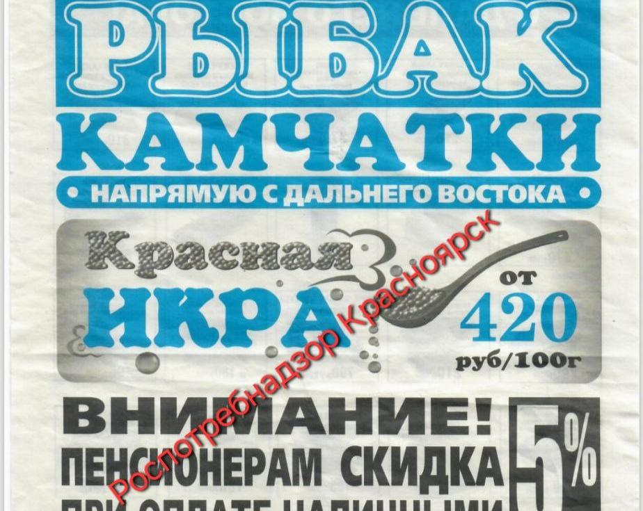 В Минусинске суд обязал уничтожить 5,4 кг лососевой икры, которую продавали без документов. Продукцию изъяли после жалоб местных жителей, купивших деликатес по рекламным листовкам из почтовых ящиков.