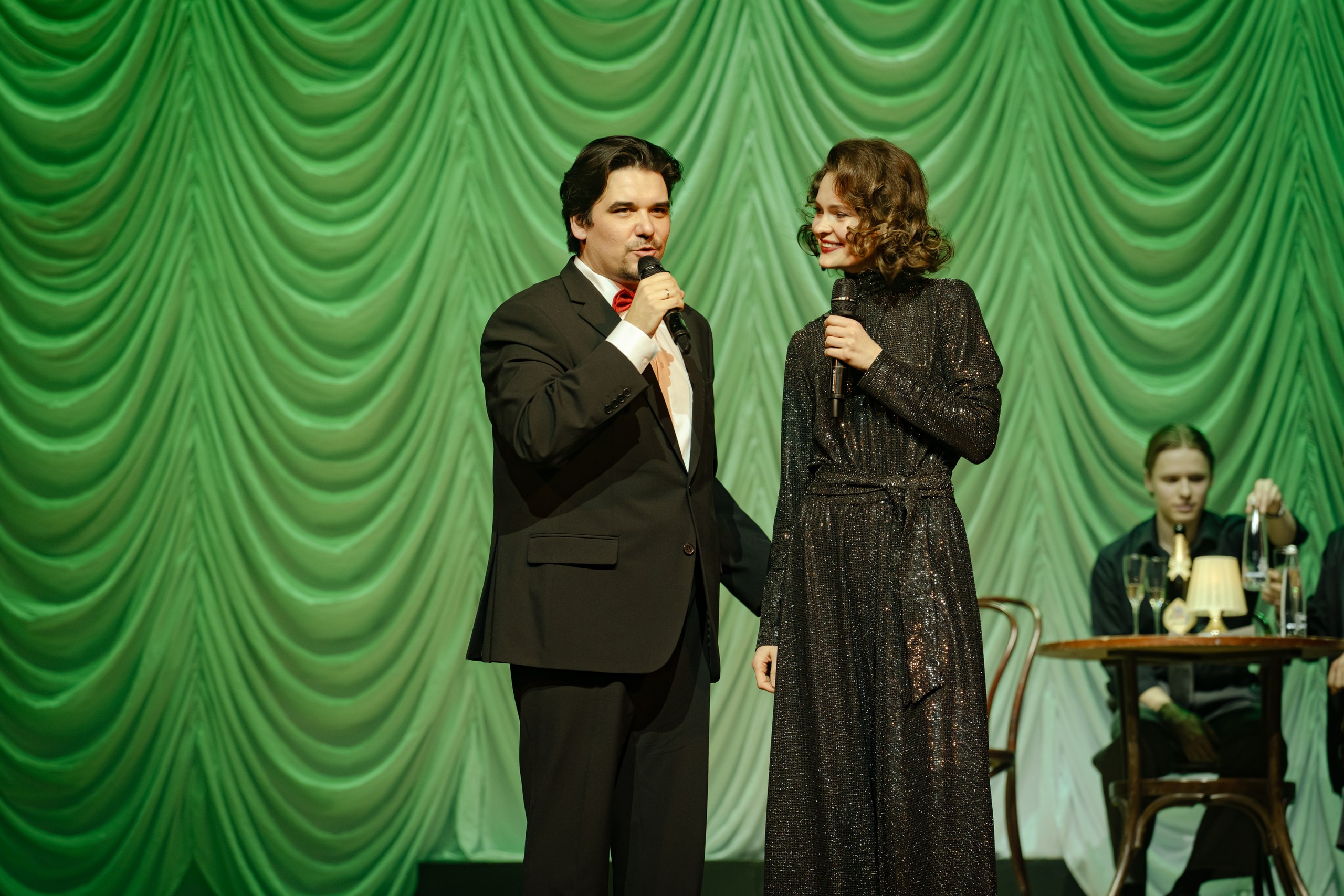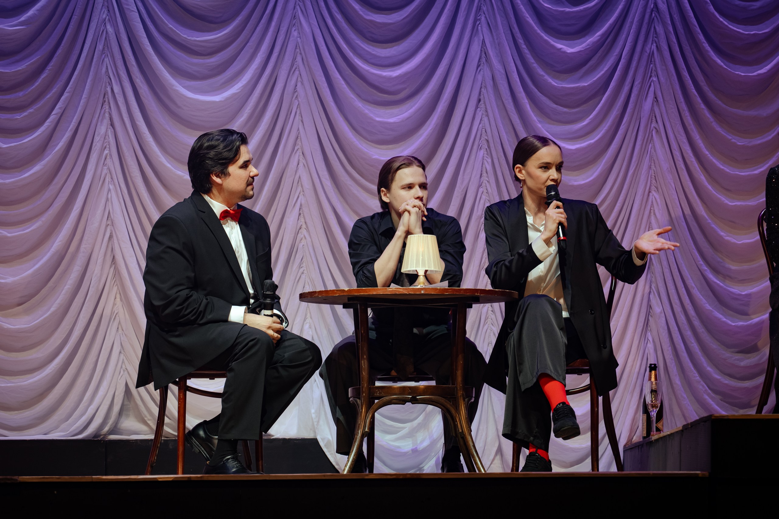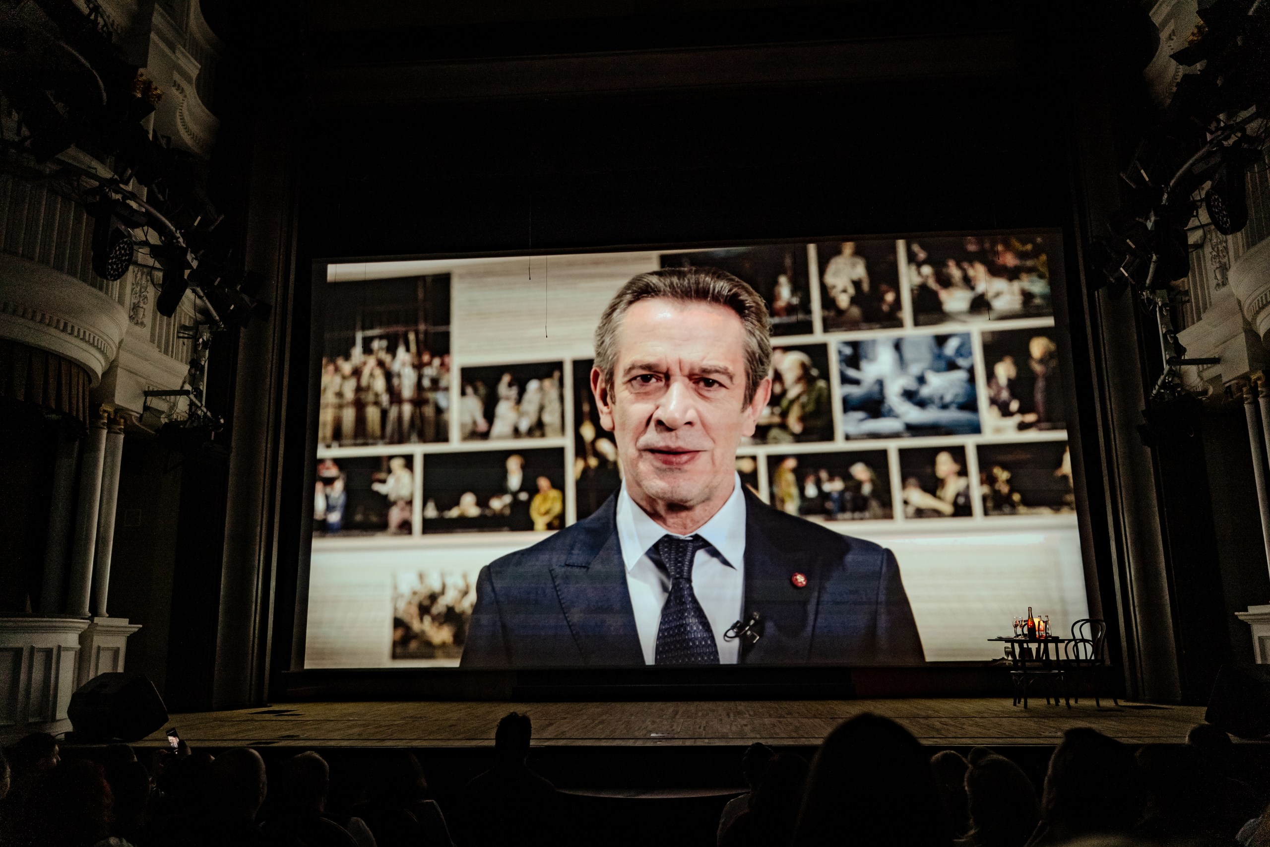 — Сегодня мы с коллегами с удовольствием встретимся со зрителями. Почему? Потому что мы любим театр и любим друга друга. Из-за любви. Все пьесы написаны из-за любви, все песни написаны из-за любви — и в театре мы тоже из-за любви.