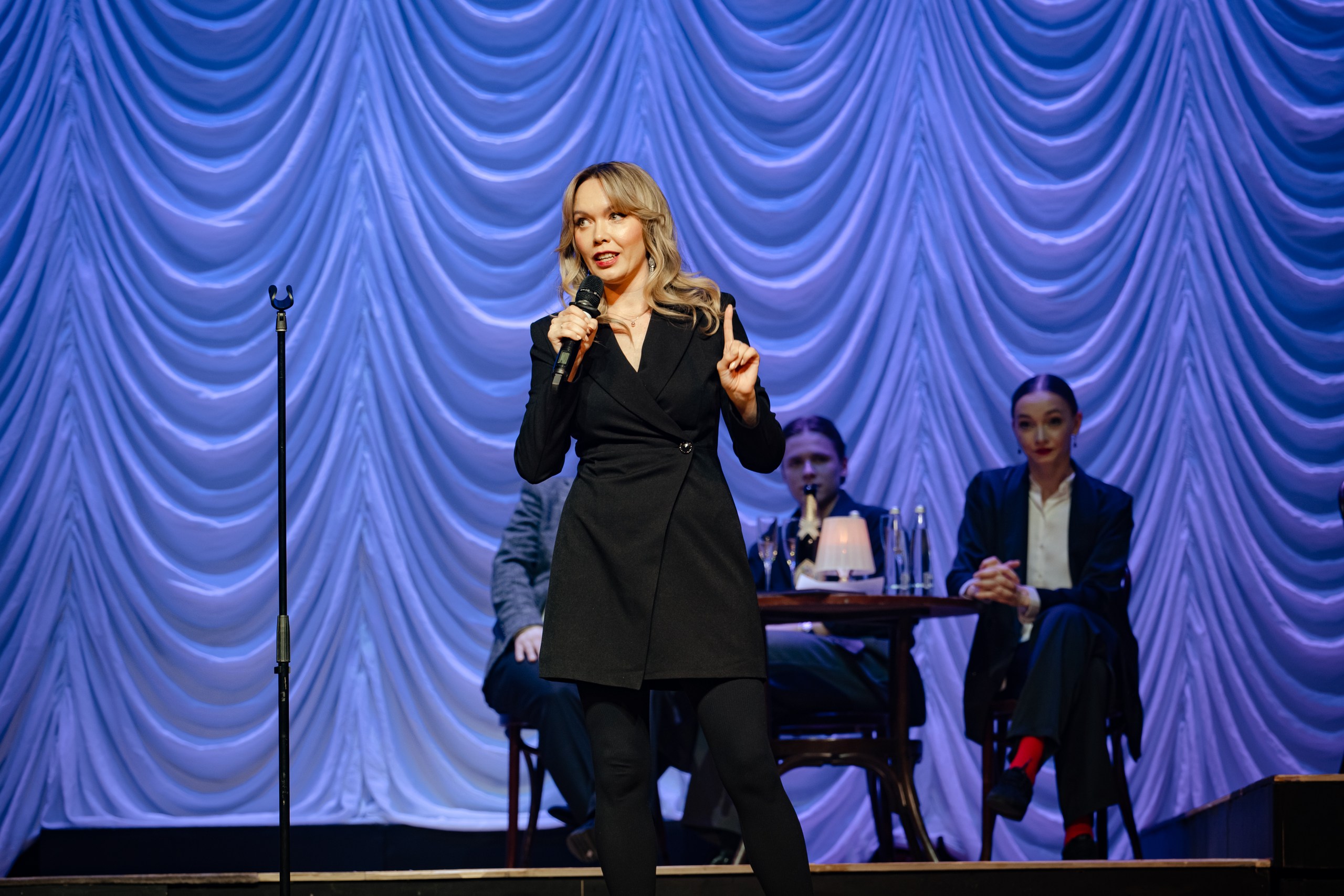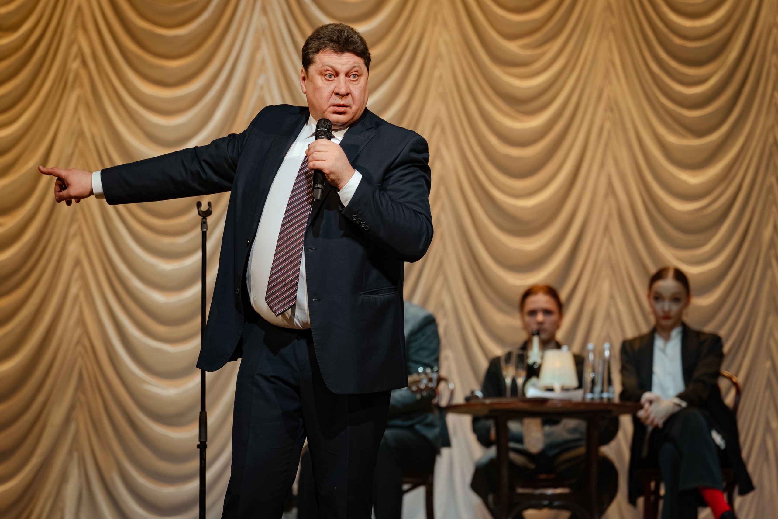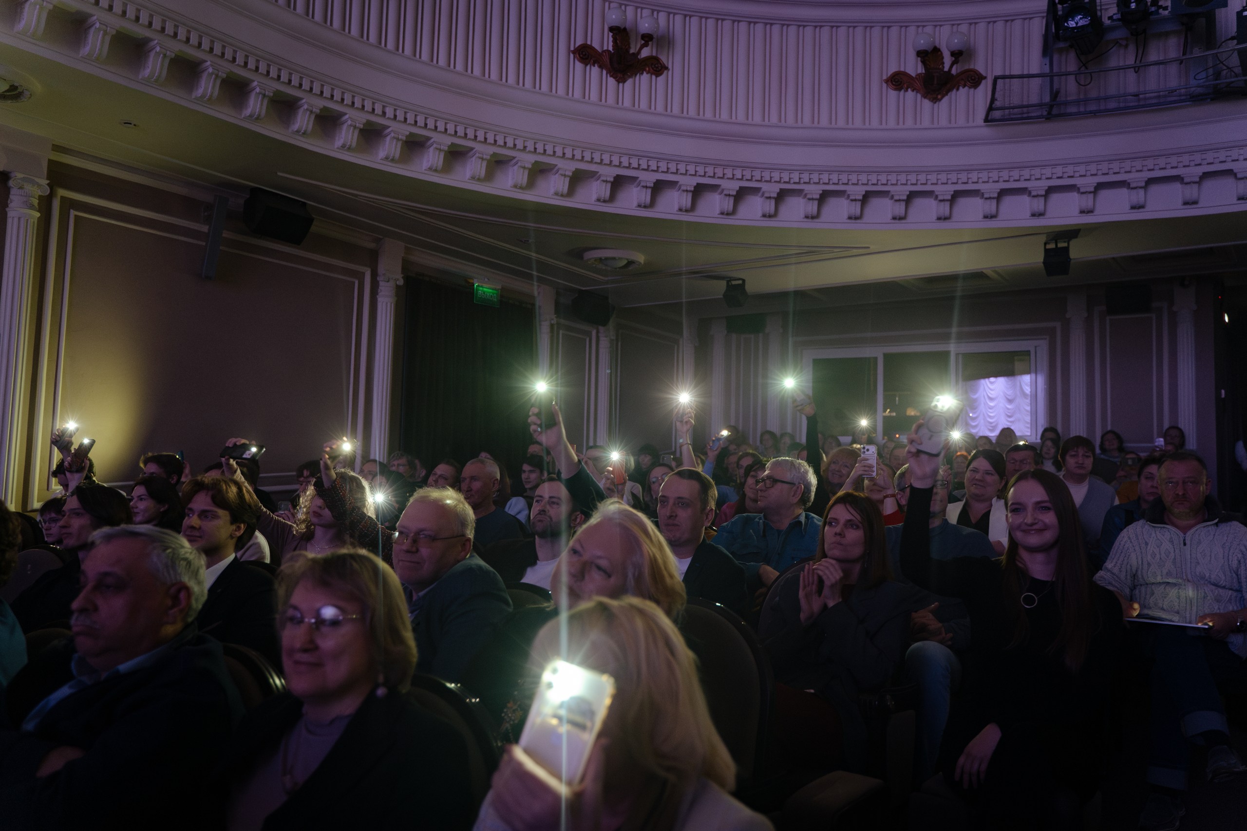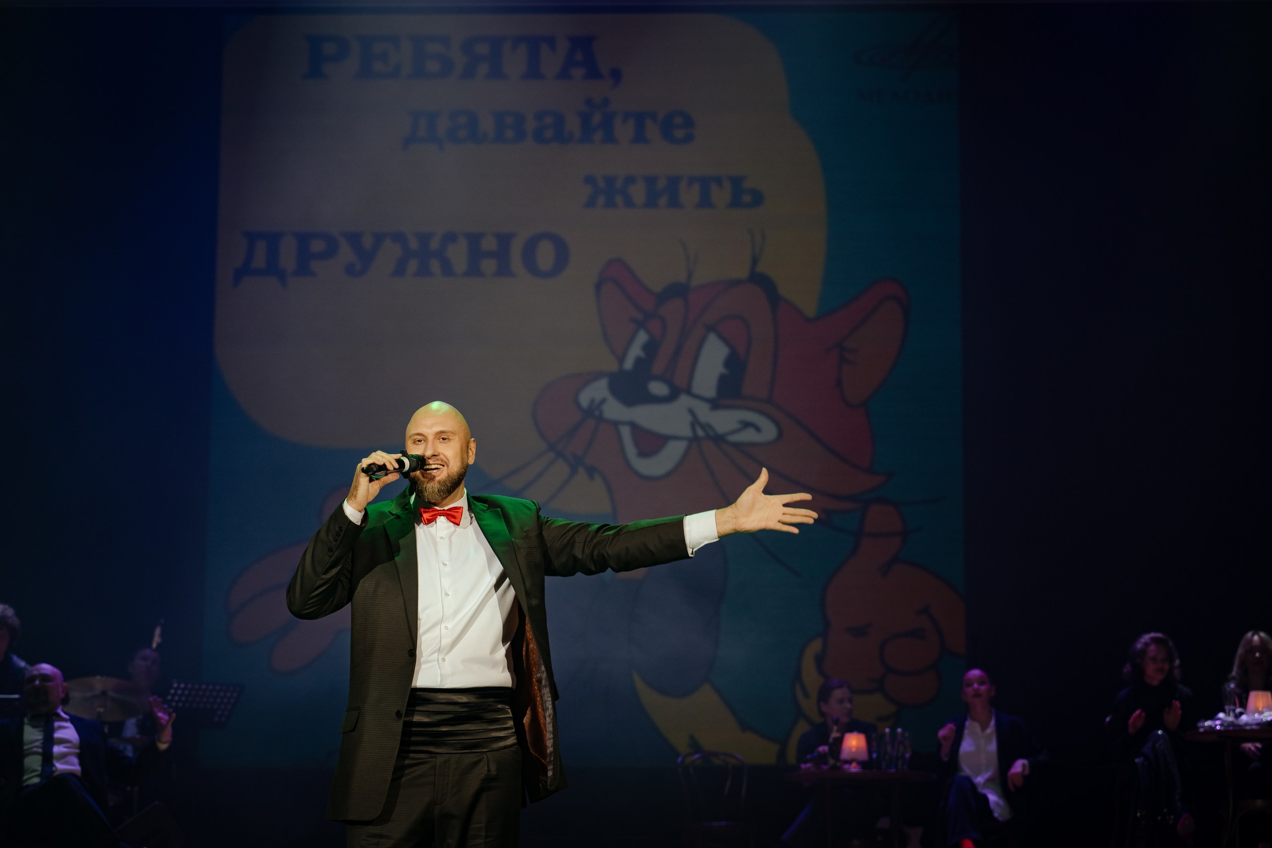 — Сегодня мы с коллегами с удовольствием встретимся со зрителями. Почему? Потому что мы любим театр и любим друга друга. Из-за любви. Все пьесы написаны из-за любви, все песни написаны из-за любви — и в театре мы тоже из-за любви.