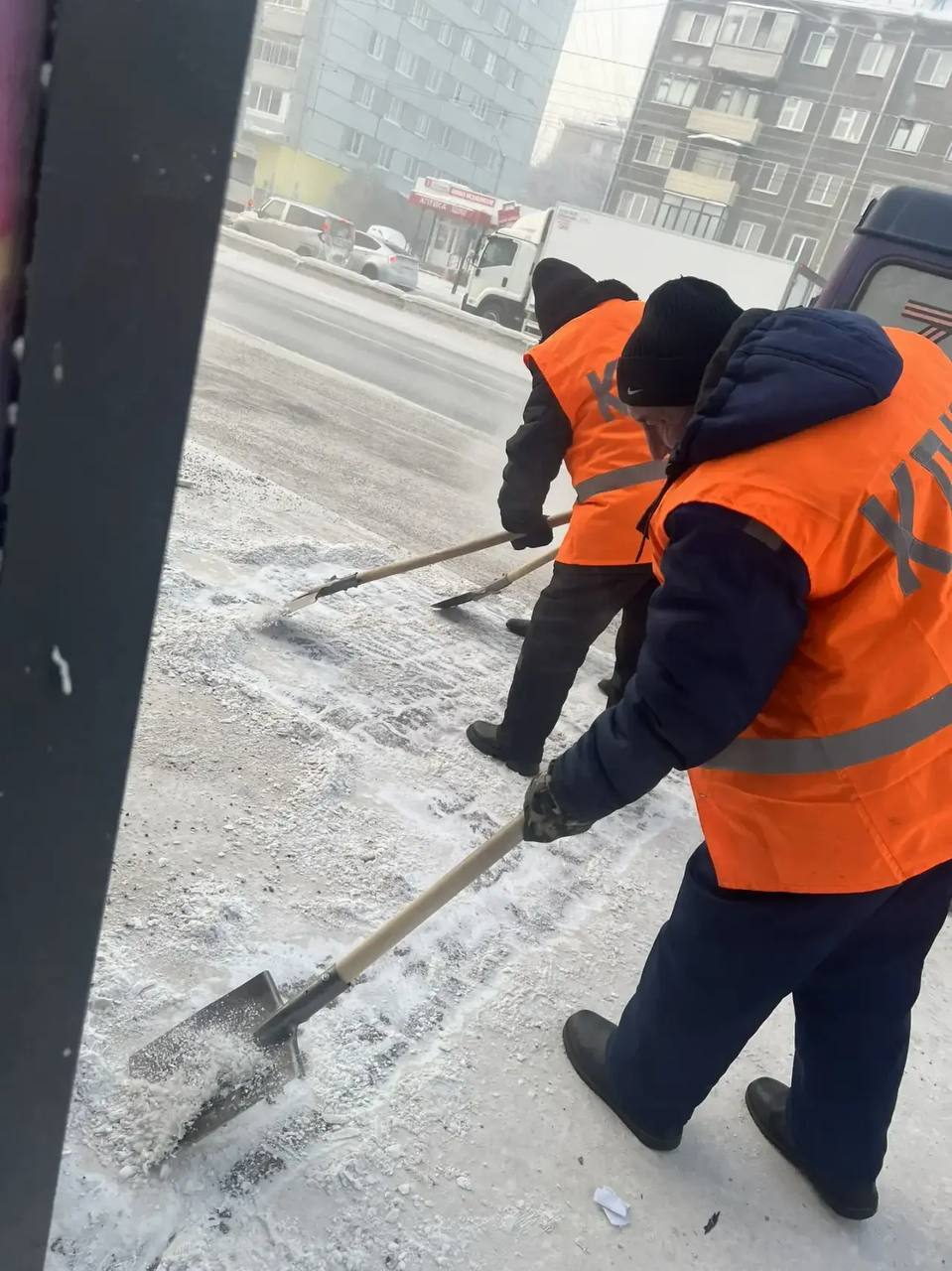 Сильные морозы мешают работе противогололедных материалов, но дорожные службы Красноярска продолжают работать. Сегодня на уборку улиц и тротуаров вышли 130 человек и более 50 единиц техники.