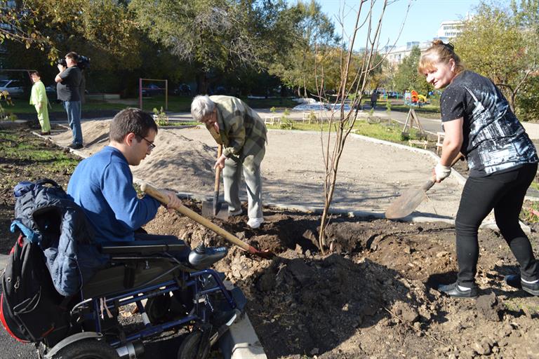 — Новый инклюзивный сквер, который в этом году создается по инициативе горожан, – объект нашей радости и гордости. Здесь смогут отдыхать и заниматься на специальных адаптированных тренажёрах люди с особенностями развития, дети и пенсионеры. Здорово, что в этом году мы высадили здесь деревья. Надеюсь, наша семейная яблонька хорошо перезимует и зацветёт по весне, — поделился своими впечатлениями руководитель администрации Октябрьского района Борис Переверзев, который также принял участие в акции.