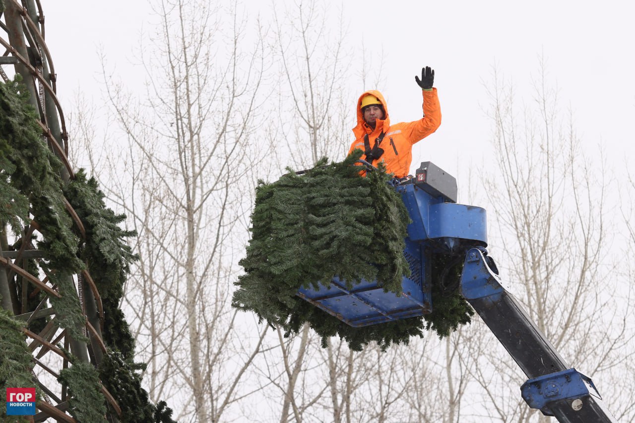 В Татышев-парке уже собирают главную городскую елку. Процесс это небыстрый: сначала рабочие должны установить металлический каркас, потом закрепить на него зелёные «ветки». Дальше елку будут собирать как большую пирамидку, используя подъёмную технику. Когда форма будет готова, конструкцию начнут украшать: гирлянды, крупные новогодние шары.